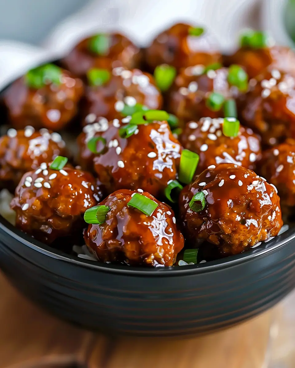 Serve your meatballs over a bed of steamed jasmine rice, or for a fun twist, toss them with stir-fried noodles. The sauce will coat everything beautifully, making every bite delicious.