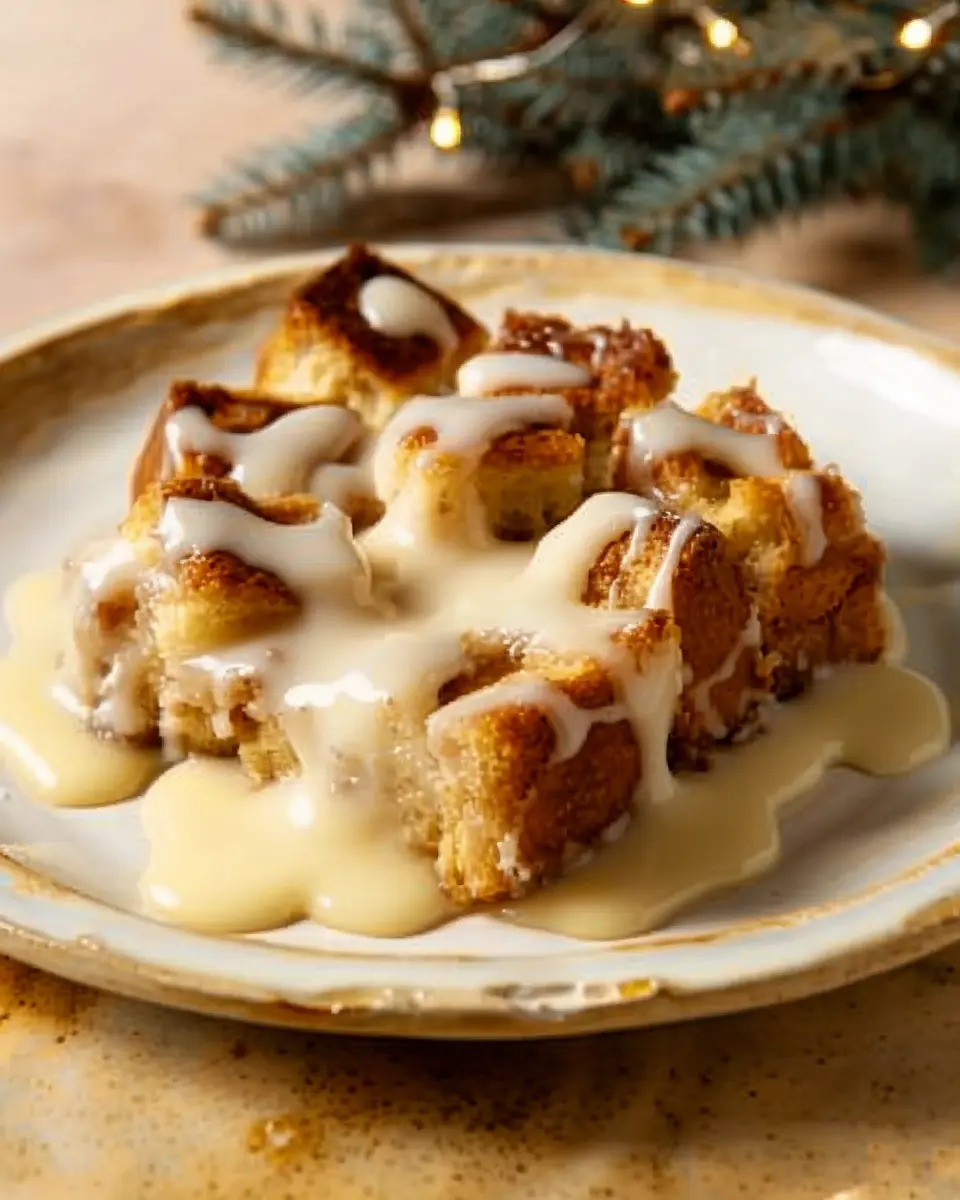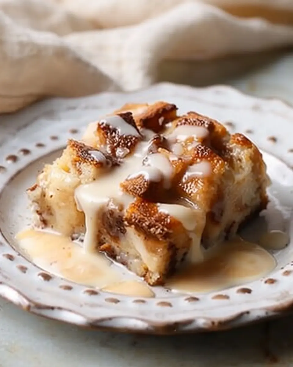 A delicious and comforting bread pudding recipe served with a rich vanilla sauce, perfect for dessert.