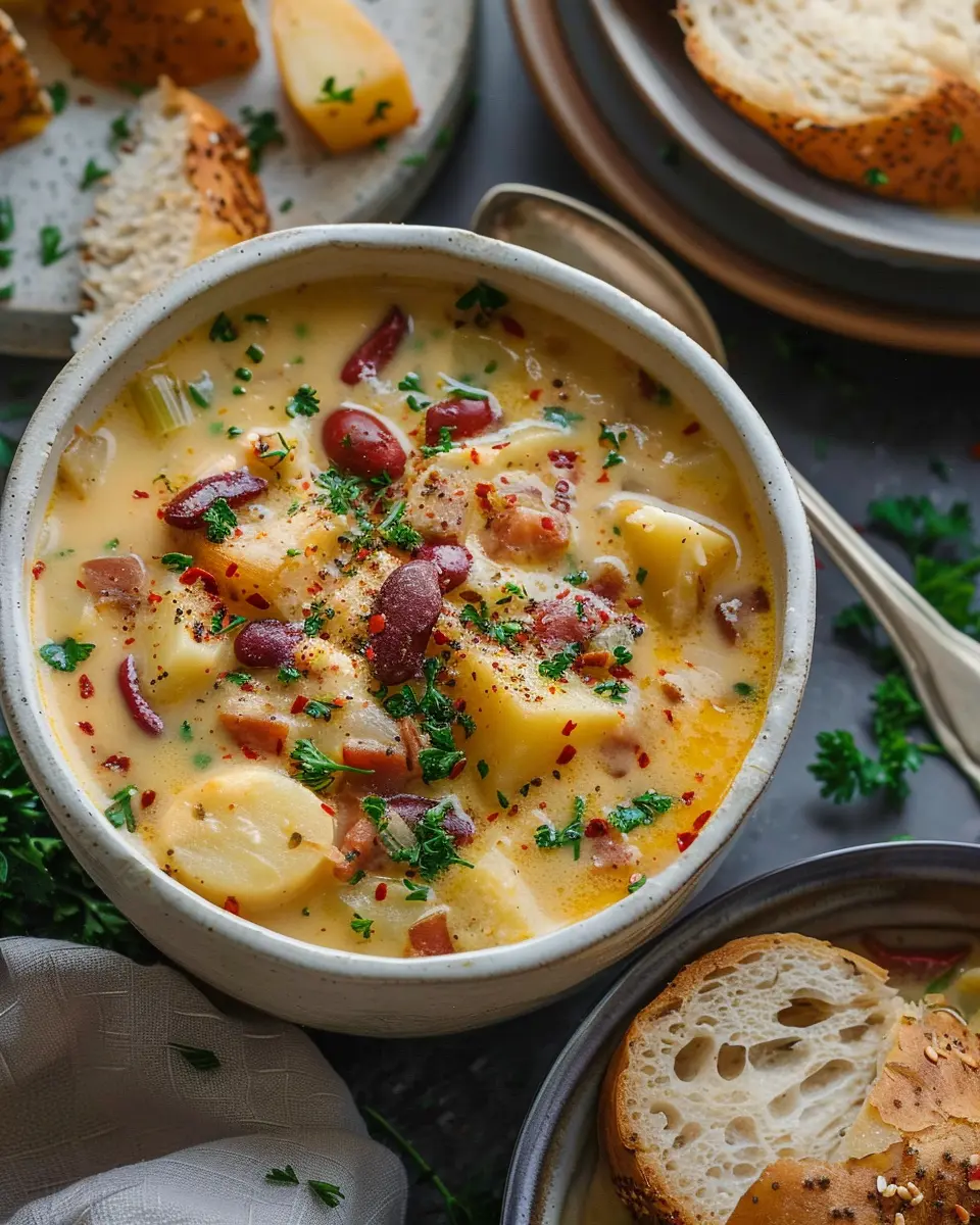 Cajun Potato Soup: The Best Creamy Comfort with Turkey Bacon and Chicken Ham