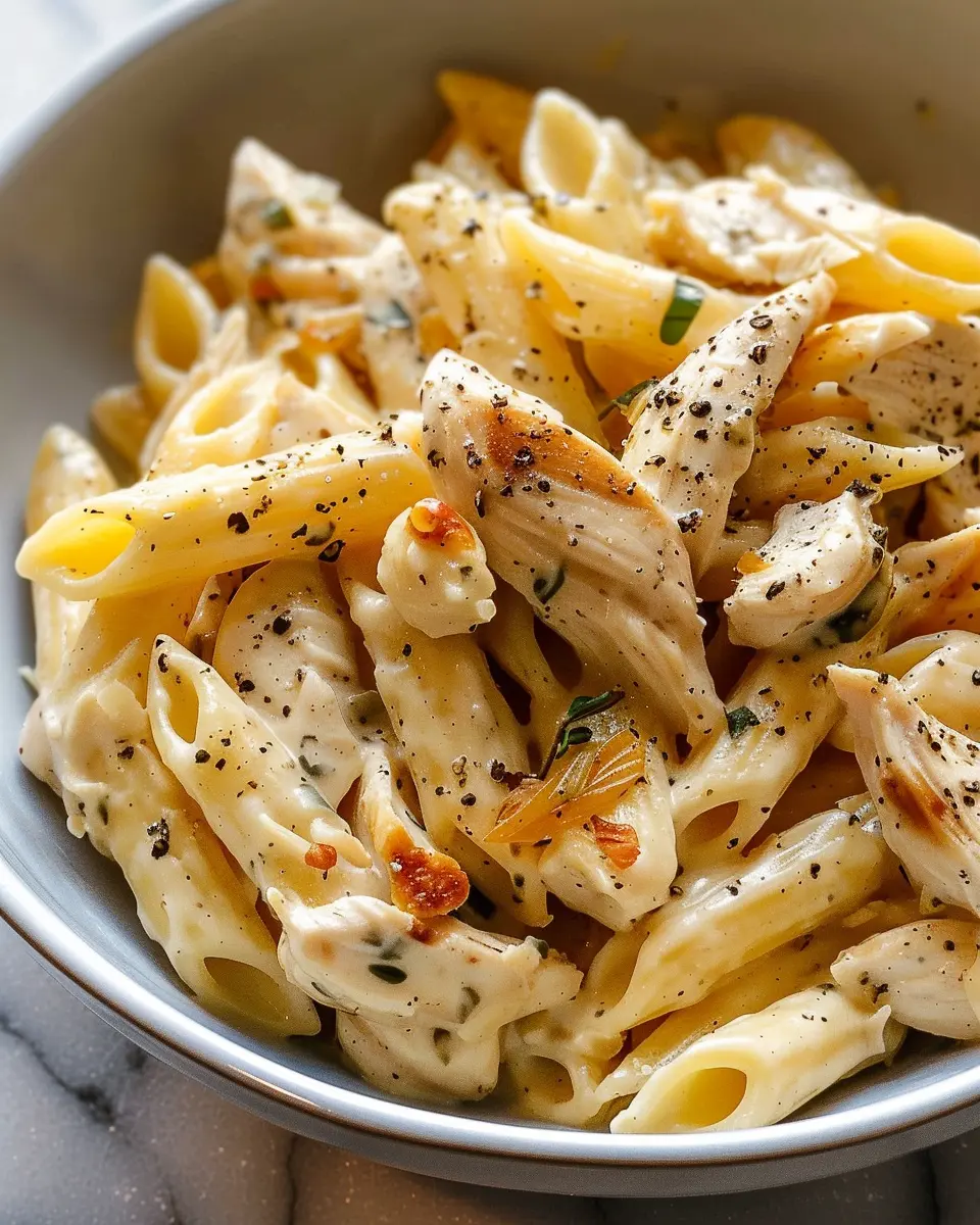 Creamy Garlic Chicken Pasta with Turkey Bacon: Easy and Indulgent
