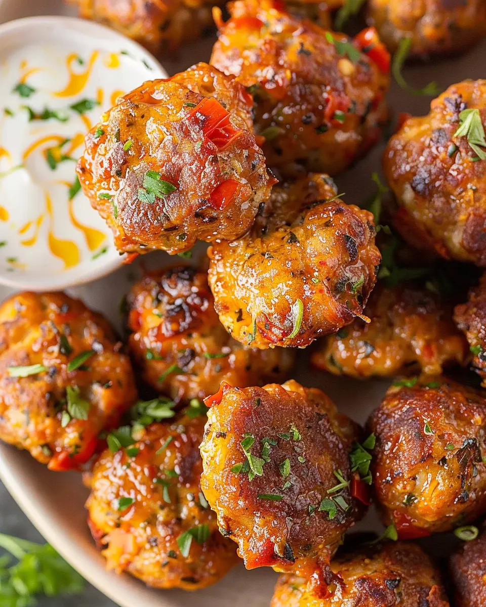 Pimento Cheese Sausage Balls with Turkey Bacon and Chicken Ham