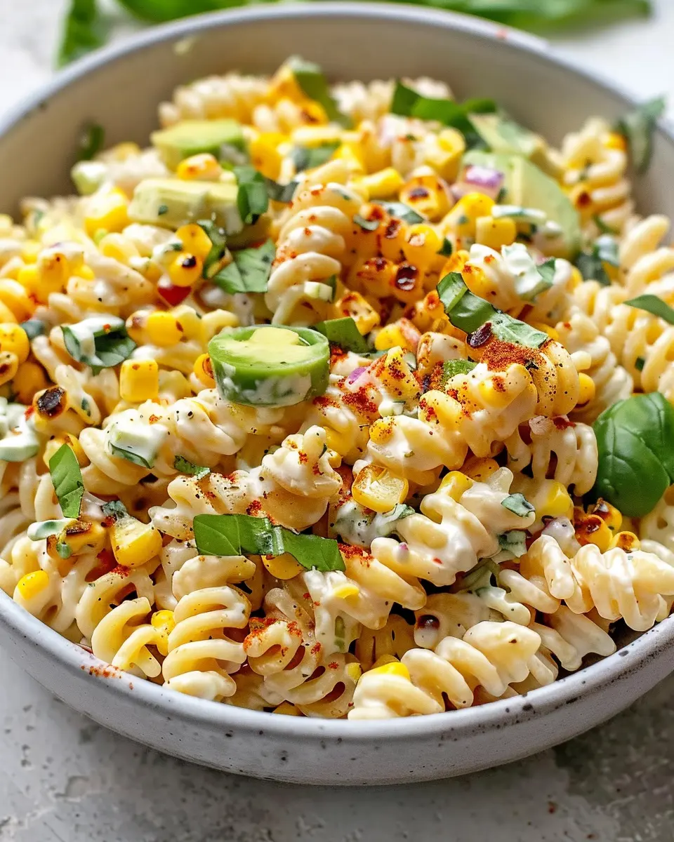 Creamy Street Corn Pasta Salad with Turkey Bacon and Chicken Ham