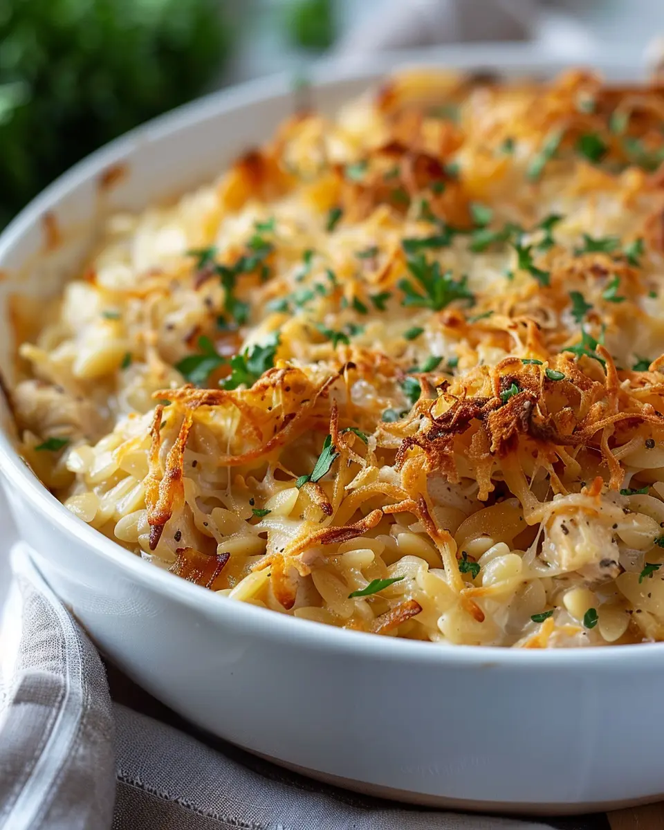 French Onion Chicken Orzo Casserole: Easy Comfort Food Delight