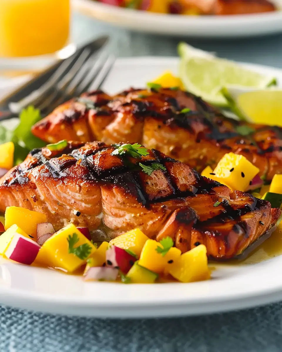 Grilled Ginger-Teriyaki Salmon with Sweet Honey-Mango Salsa