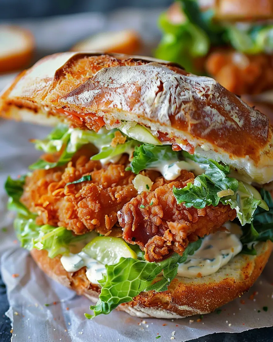 Crispy Chicken Caesar Sandwich with Turkey Bacon and Chicken Ham