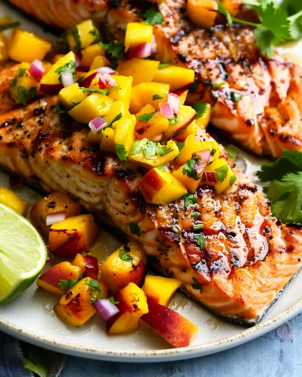 Grilled Salmon with Mango Peach Salsa: A Juicy Summer Delight