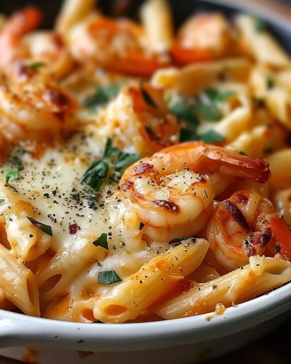 Indulge in a creamy, cheesy shrimp penne pasta that is easy to make and delicious to savor.