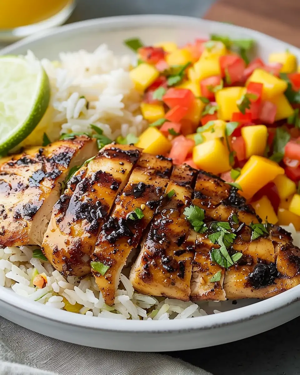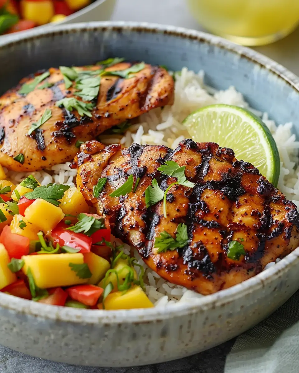 Finally, itās time to plate your masterpiece! Serve the grilled chicken over a generous scoop of the Caribbean rice, topped with the vibrant mango salsa. A sprinkle of fresh lime juice or a few slices of avocado makes for a lovely finishing touch.