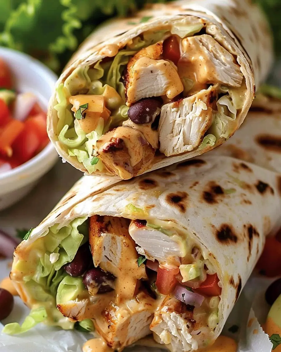 When grilling your chicken, cut it into uniform pieces to promote even cooking. This is key for ensuring each bite is flavorful and tender. Consider marinating your chicken in the chipotle ranch dressing for at least an hour before grilling—this not only adds flavor but also helps retain moisture during cooking. For an extra yummy crunch, grill the burrito wrap for a minute after it’s assembled to seal it up properly and give it a crispy finish.