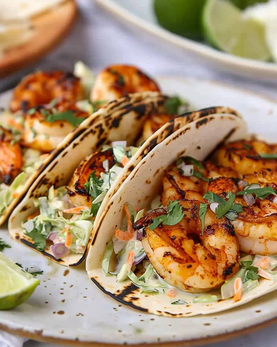 The creamy slaw serves as the perfect counterpart to your shrimp. It adds crunch and a layer of creaminess that balances the dish beautifully.