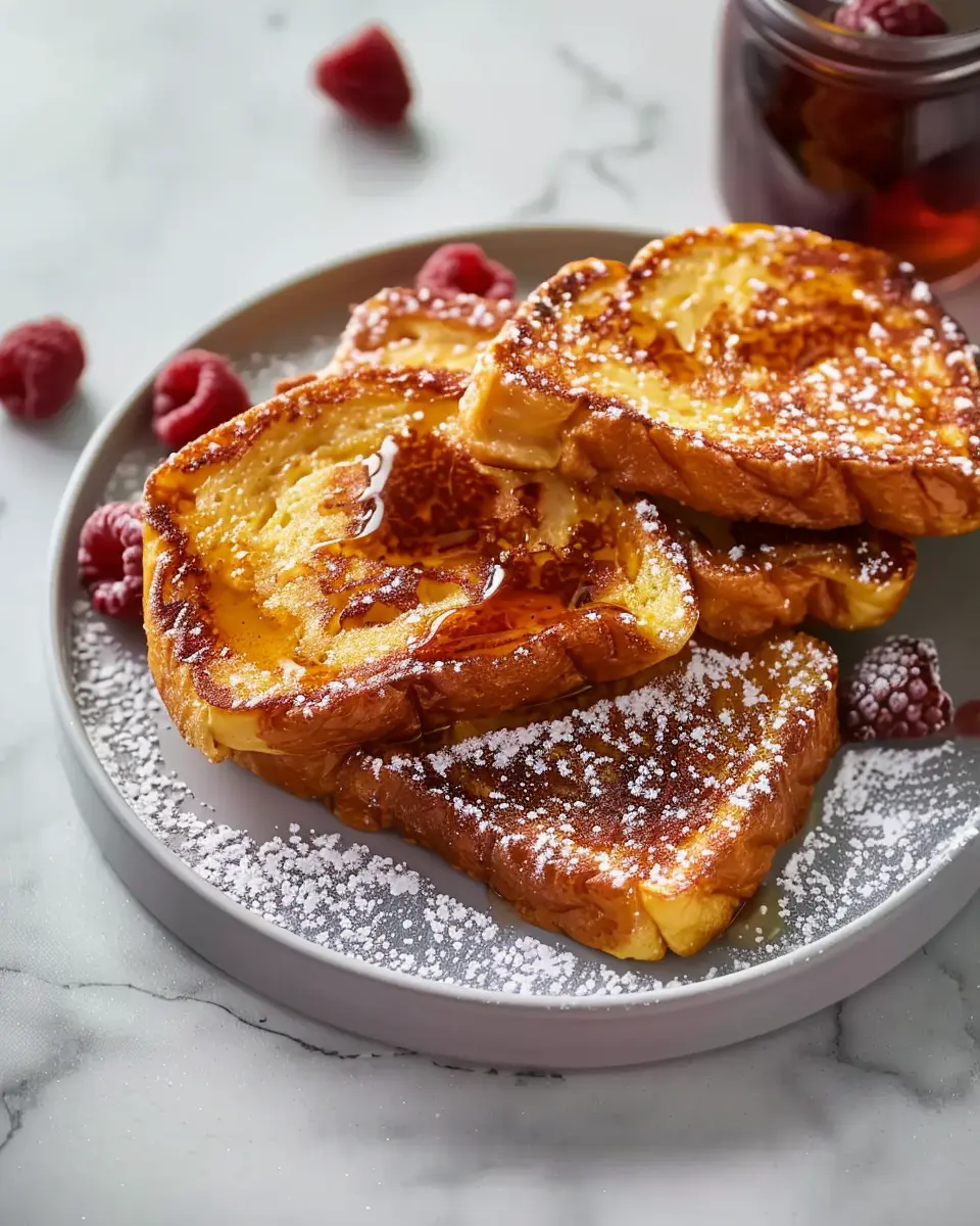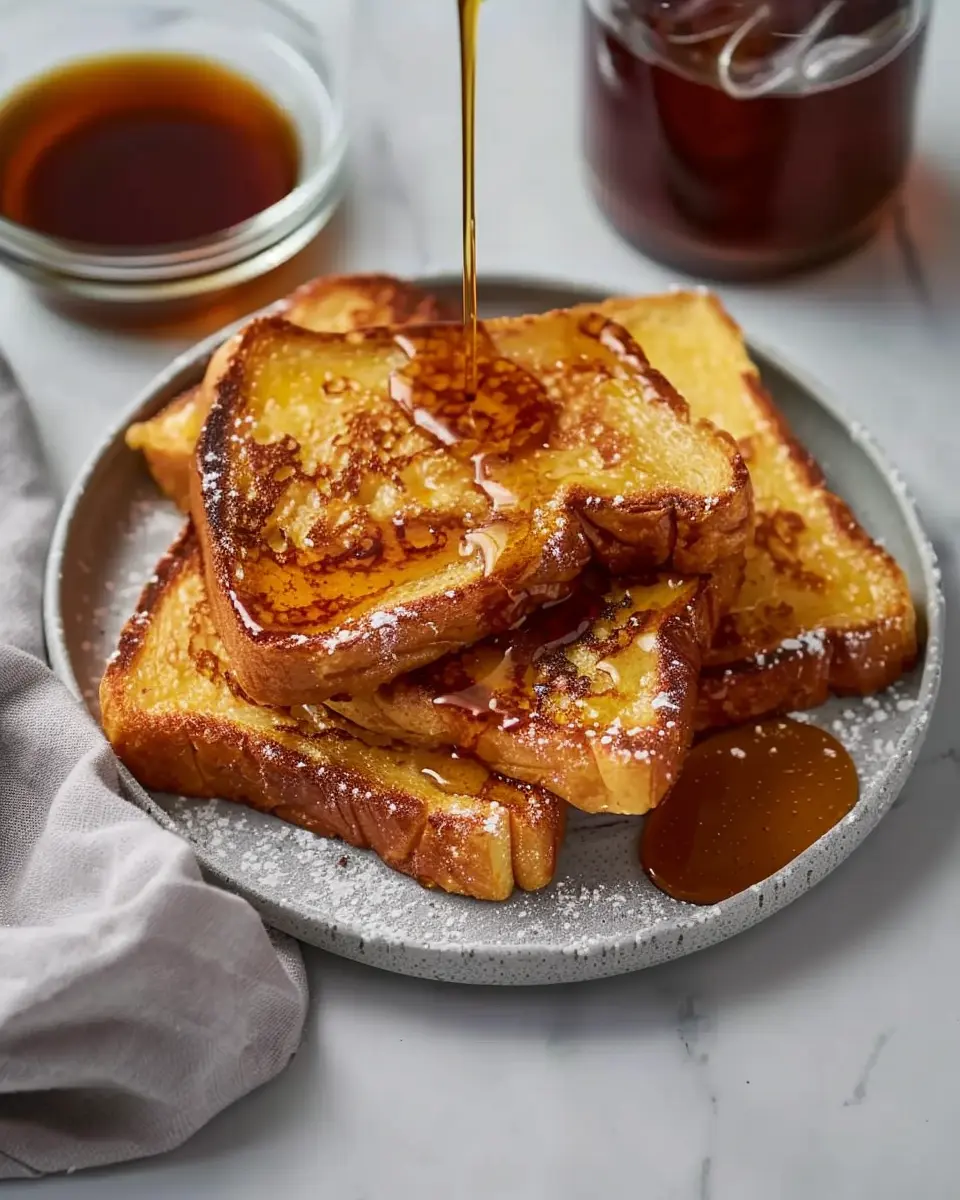 Finally, the moment you’ve been waiting for! Transfer your perfectly cooked classic French toast onto plates. Now, delight your guests—or treat yourself—with a choice of toppings: