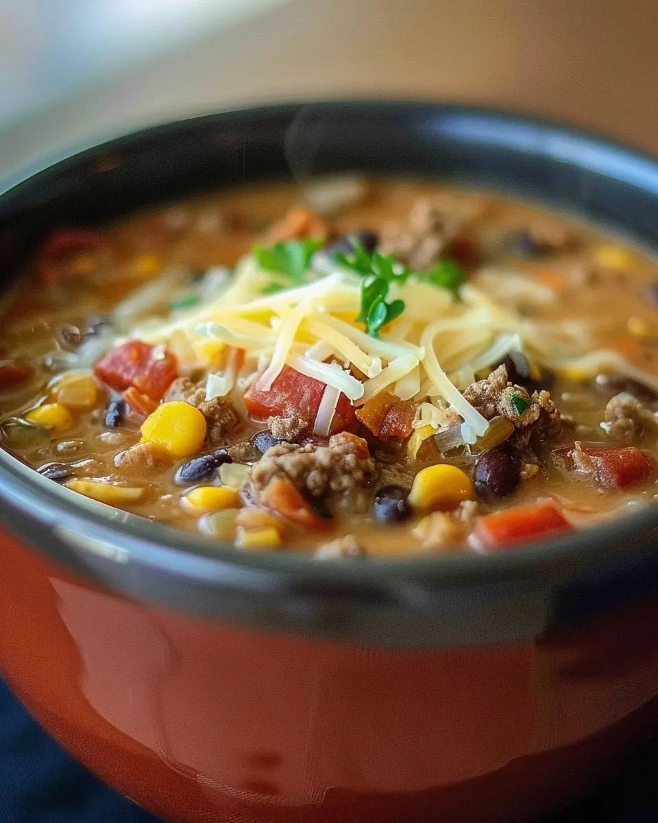 - Crushed tortilla chips that add a satisfying crunch and extra flavor.
