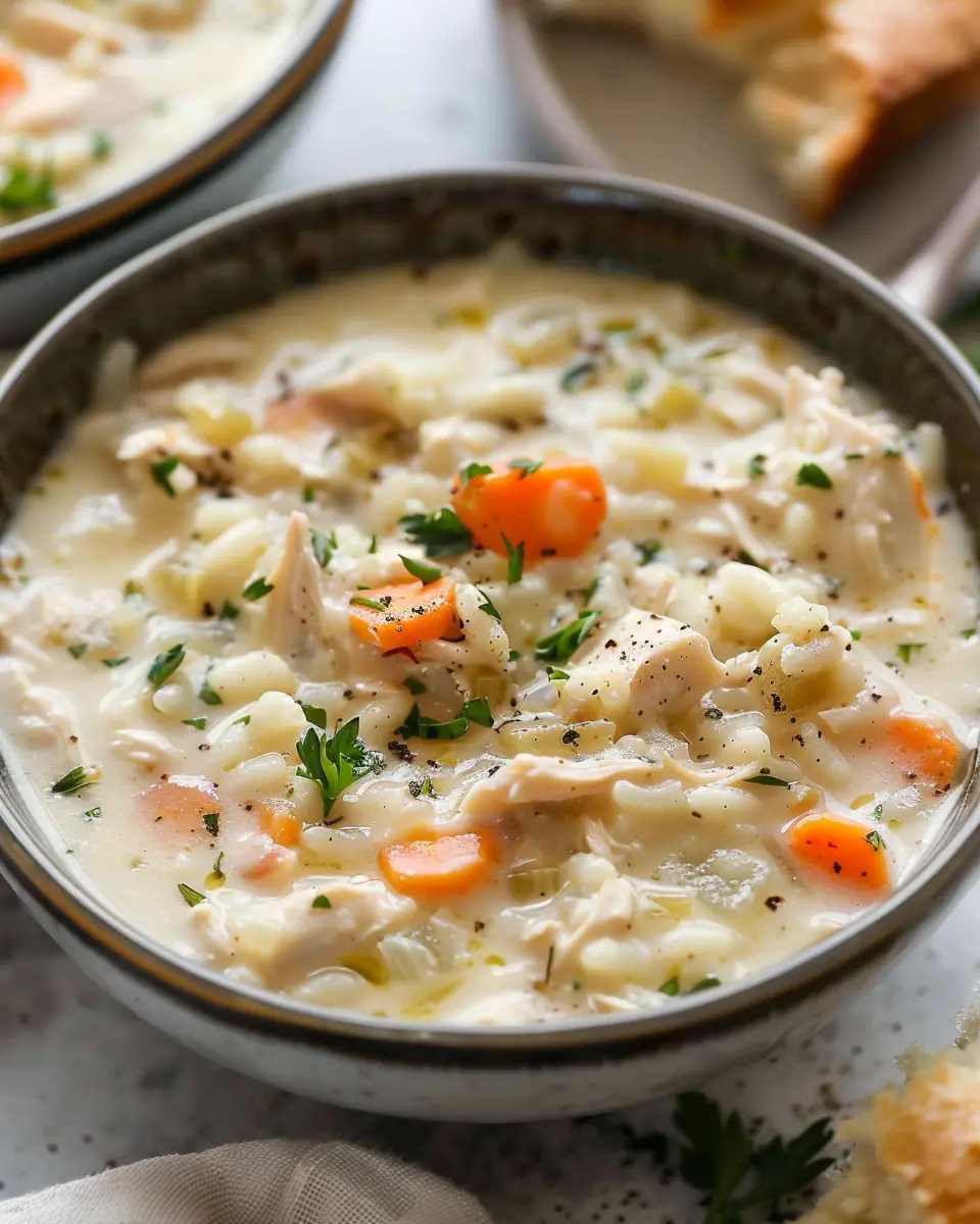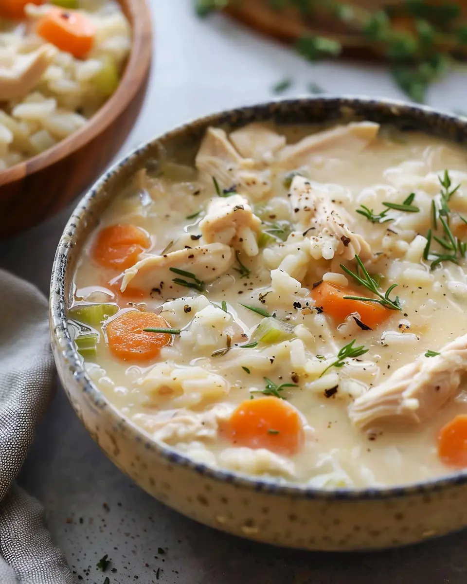Discover the cozy delight of creamy chicken and rice soup, perfect for a comforting meal.