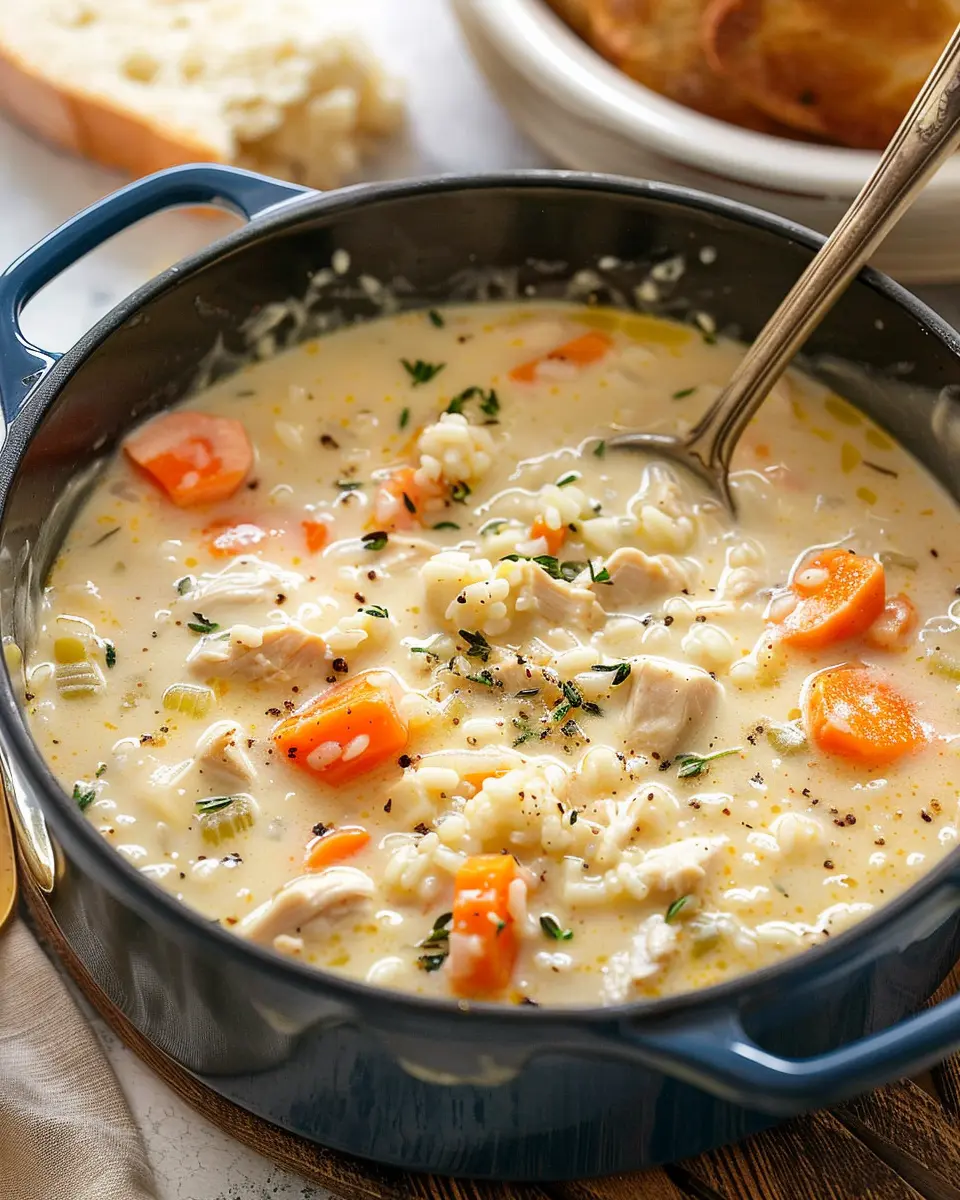 So roll up your sleeves, experiment, and enjoy your deliciously personalized creamy chicken and rice soup!