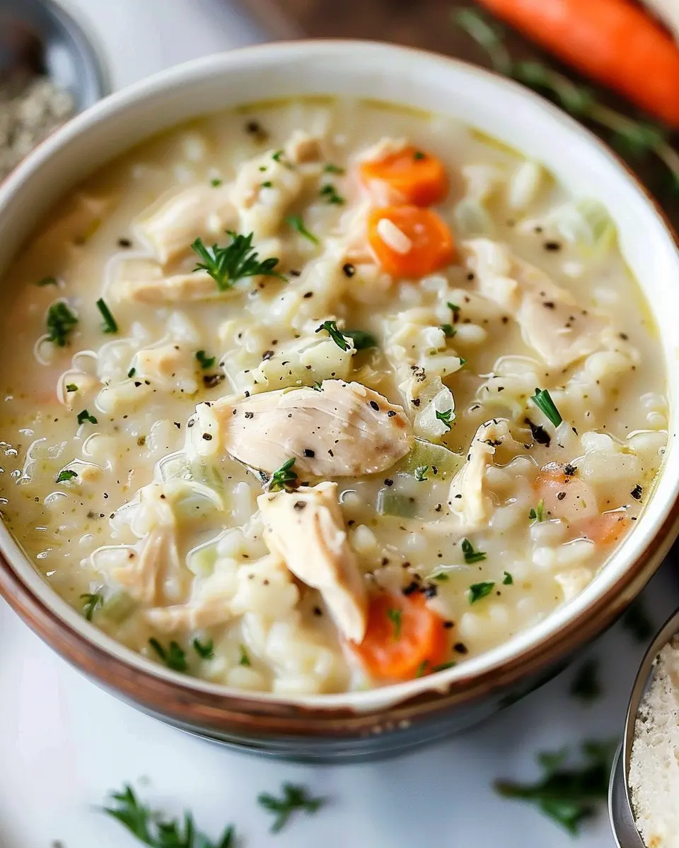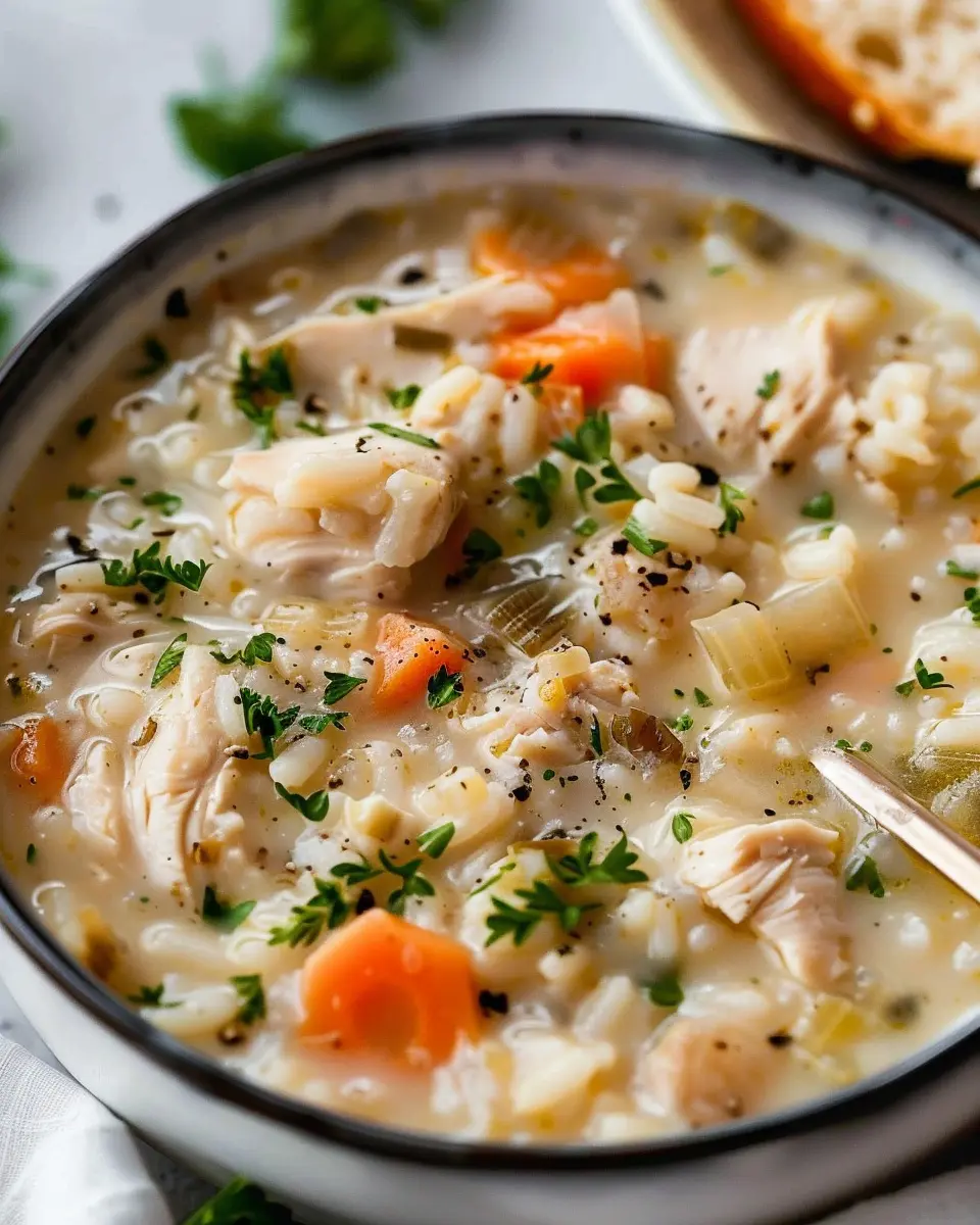 A warm and comforting creamy chicken and rice soup that’s perfect for chilly days.