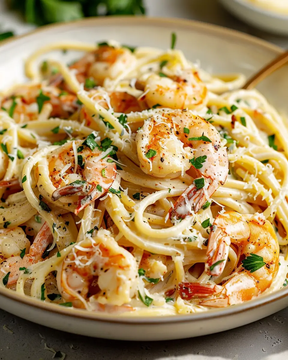 PrintCreamy Garlic Shrimp Pasta: Indulgent Comfort Food Made Easy