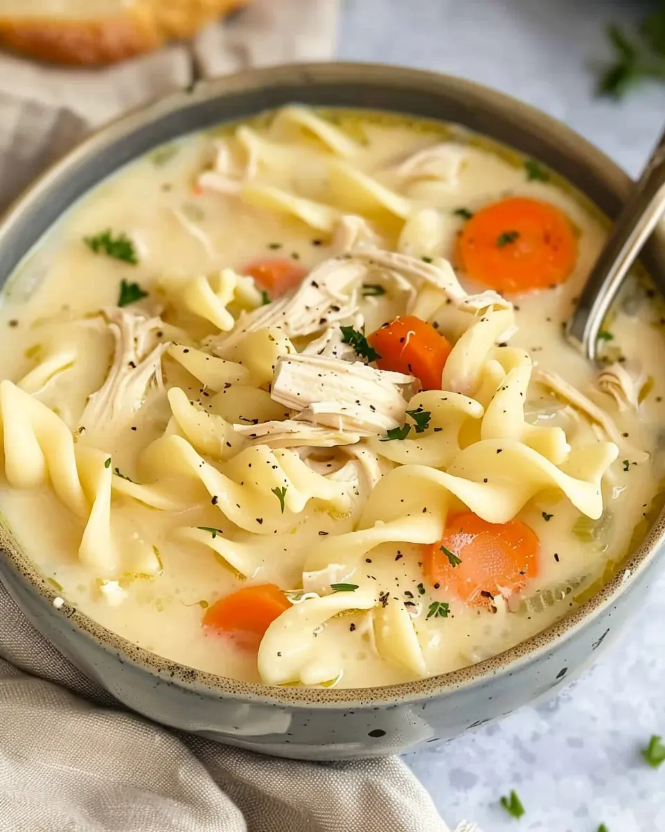 Serve this comforting bowl of easy creamy chicken noodle soup with warm crusty bread or a simple side salad for a complete meal that feels like a cozy hug.