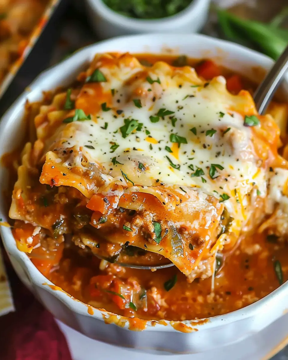 If you’re in the mood for a cozy bowl of easy creamy lasagna soup but want to keep it plant-based, fear not! You can easily transform this dish into a stunning vegetarian delight. Replace ground beef with a mix of sautéed mushrooms, lentils, and spinach to add depth, flavor, and texture. For the creamy base, swap heavy cream with cashew cream or coconut milk for a luscious feel without the dairy. Toss in some diced zucchini and bell peppers for extra veggies. You can also experiment with your favorite vegetarian cheese or nutritional yeast for that cheesy flavor.