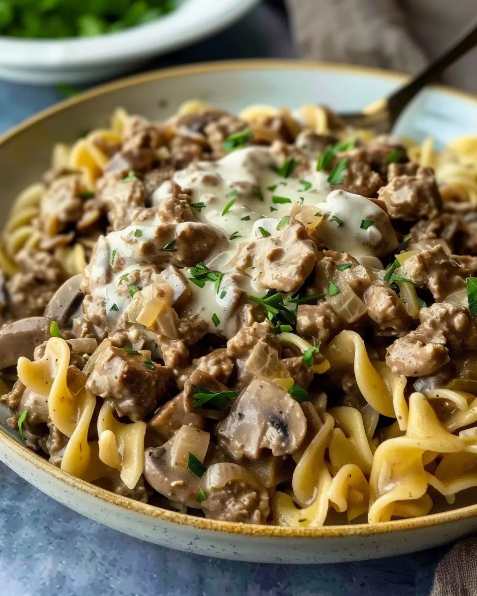 A delicious and easy recipe for Ground Beef Stroganoff that’s perfect for family dinners.