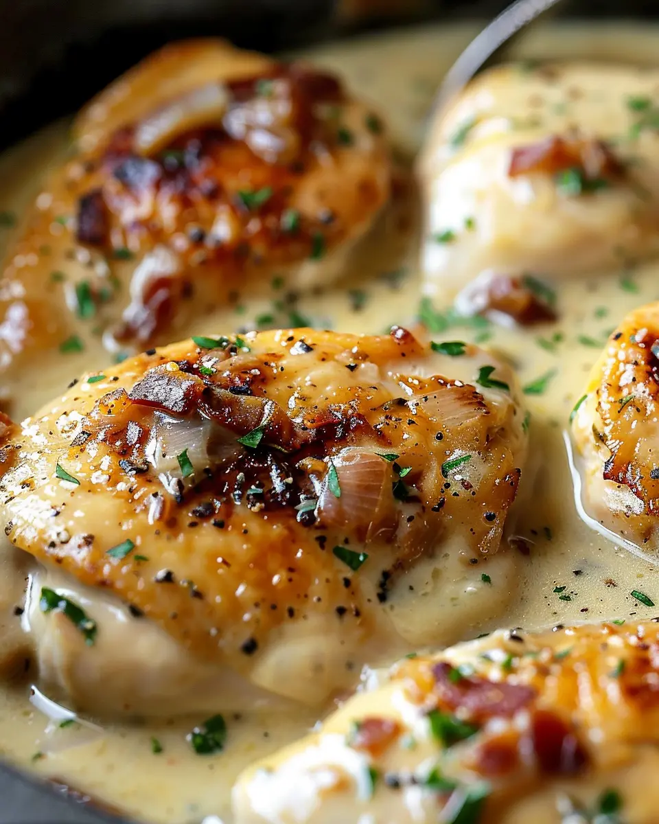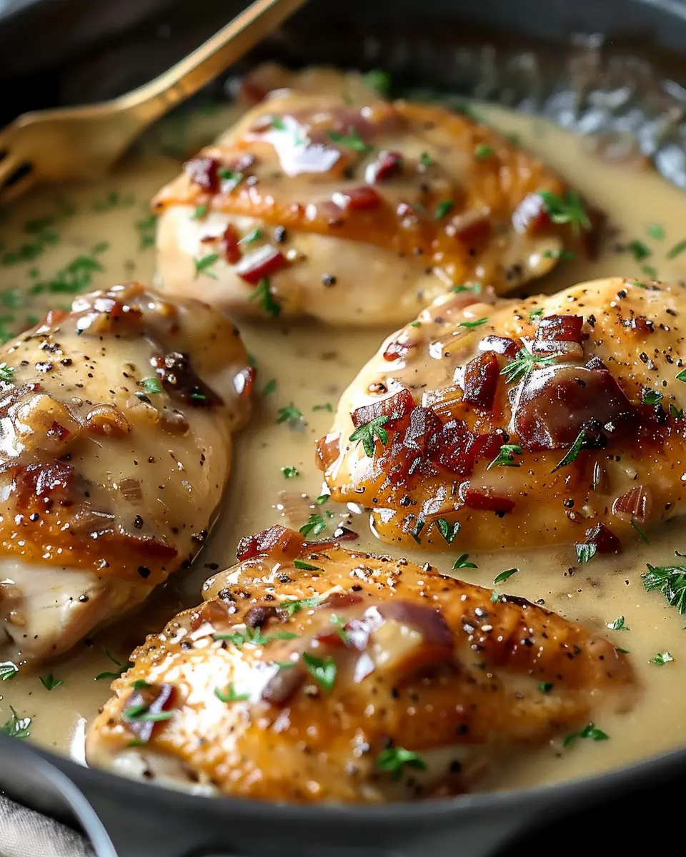 Easy Stovetop Smothered Chicken with Turkey Bacon and Creamy Sauce
