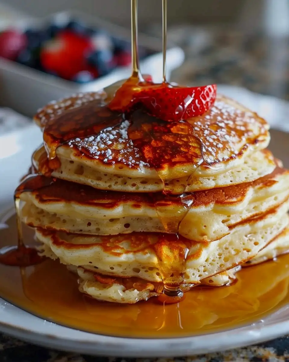 Fresh Fruit: Consider topping your pancakes with a medley of fresh berries, sliced bananas, or caramelized apples. Fruits add not just sweetness but also that refreshing contrast to the rich pancakes.
