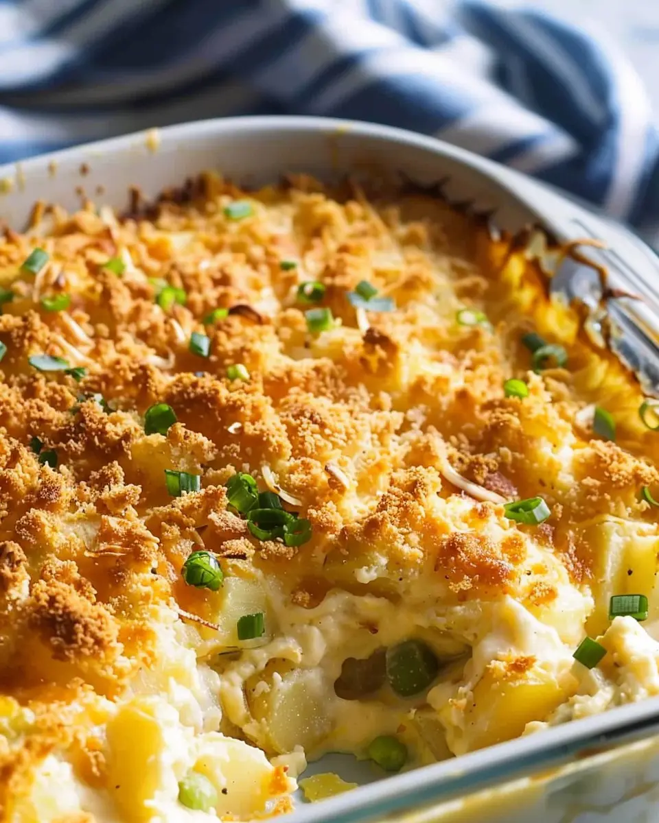 Funeral potatoes: The Best Comfort Food with Turkey Bacon and Chicken Ham