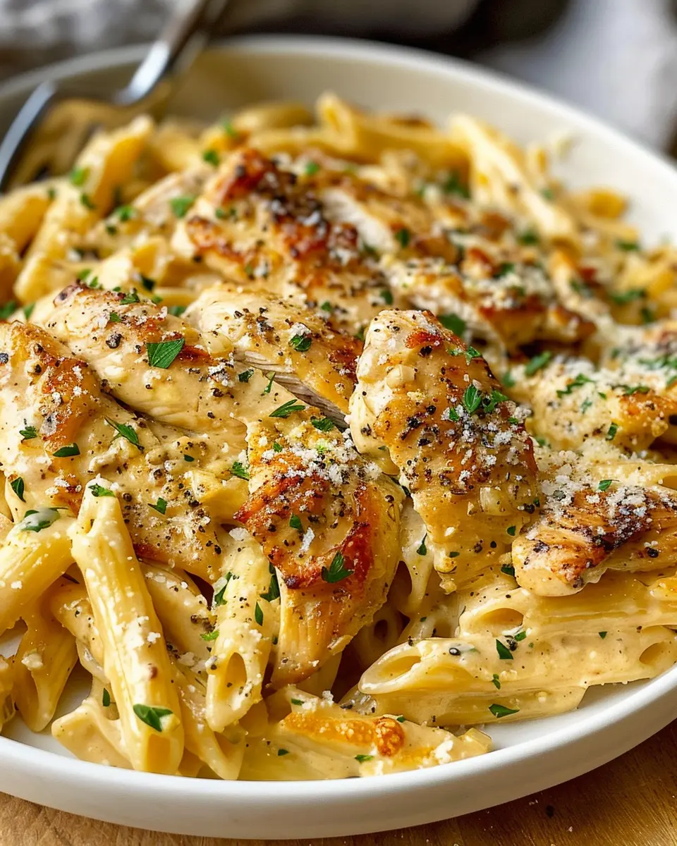 A rich, creamy sauce is the star of your garlic parmesan chicken and pasta. For that luscious texture, start with a base of sautéed garlic in butter—don’t let it brown! Gradually whisk in your alternative to cream, such as whole milk or a plant-based option, allowing it to reduce slowly. Add freshly grated Parmesan in batches, stirring continuously to avoid clumping. If the sauce becomes too thick, just add a splash of chicken broth or pasta water to loosen it up. By the end, you’ll have a perfect creamy concoction that coats every noodle!