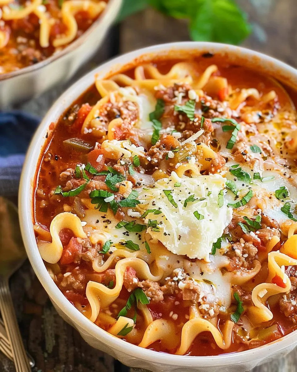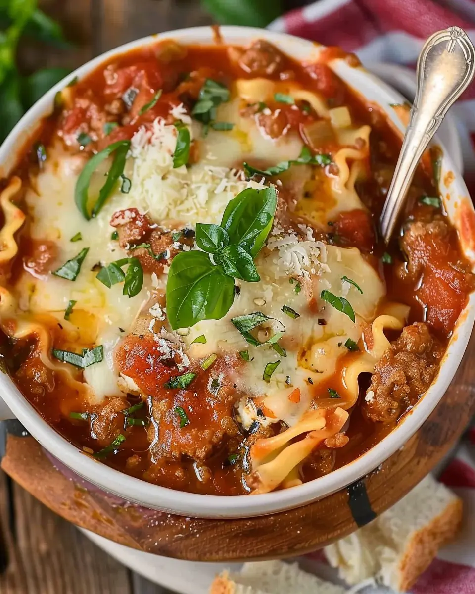 A warming, delightful twist on traditional lasagna that combines all the flavors into a comforting soup.