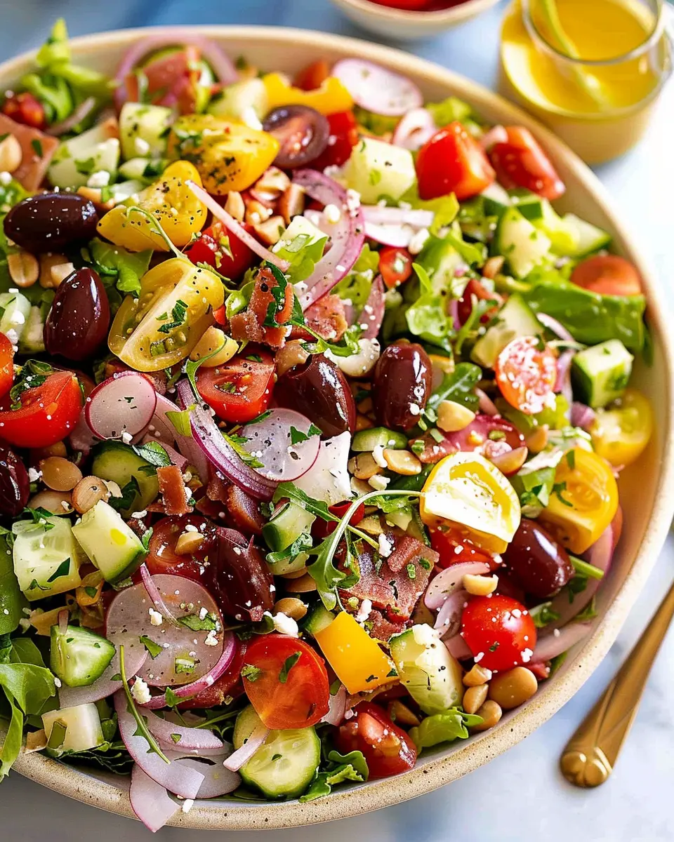 Italian Chopped Salad delivers a vibrant mix of flavors and textures that can brighten even the busiest of weeknights. Whipping it up at home is easier than you might think! Not only do you get to control the ingredients, ensuring everything is fresh and tailored to your taste, but this salad also brings a satisfying crunch that goes well with any meal or as a standalone dish.