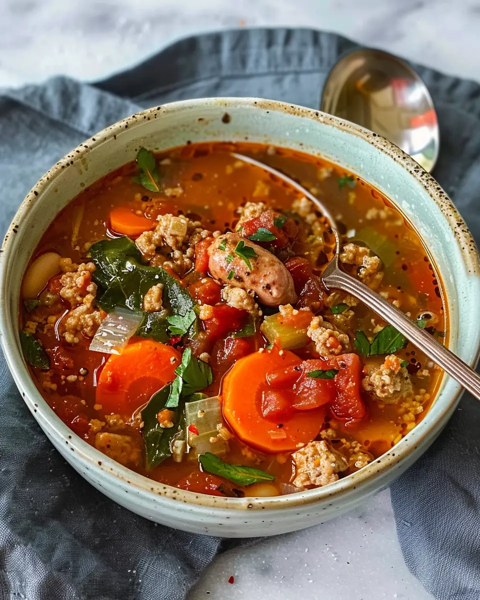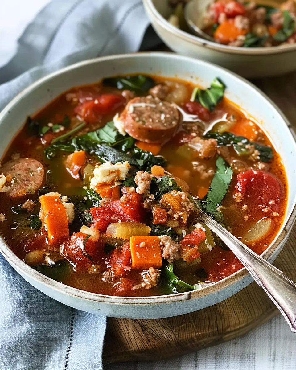 Packed with protein from lean Italian sausage and veggies, this soup provides approximately 20 grams of protein per serving. That’s great news for anyone looking to maintain or build muscle while keeping meals interesting and flavorful!