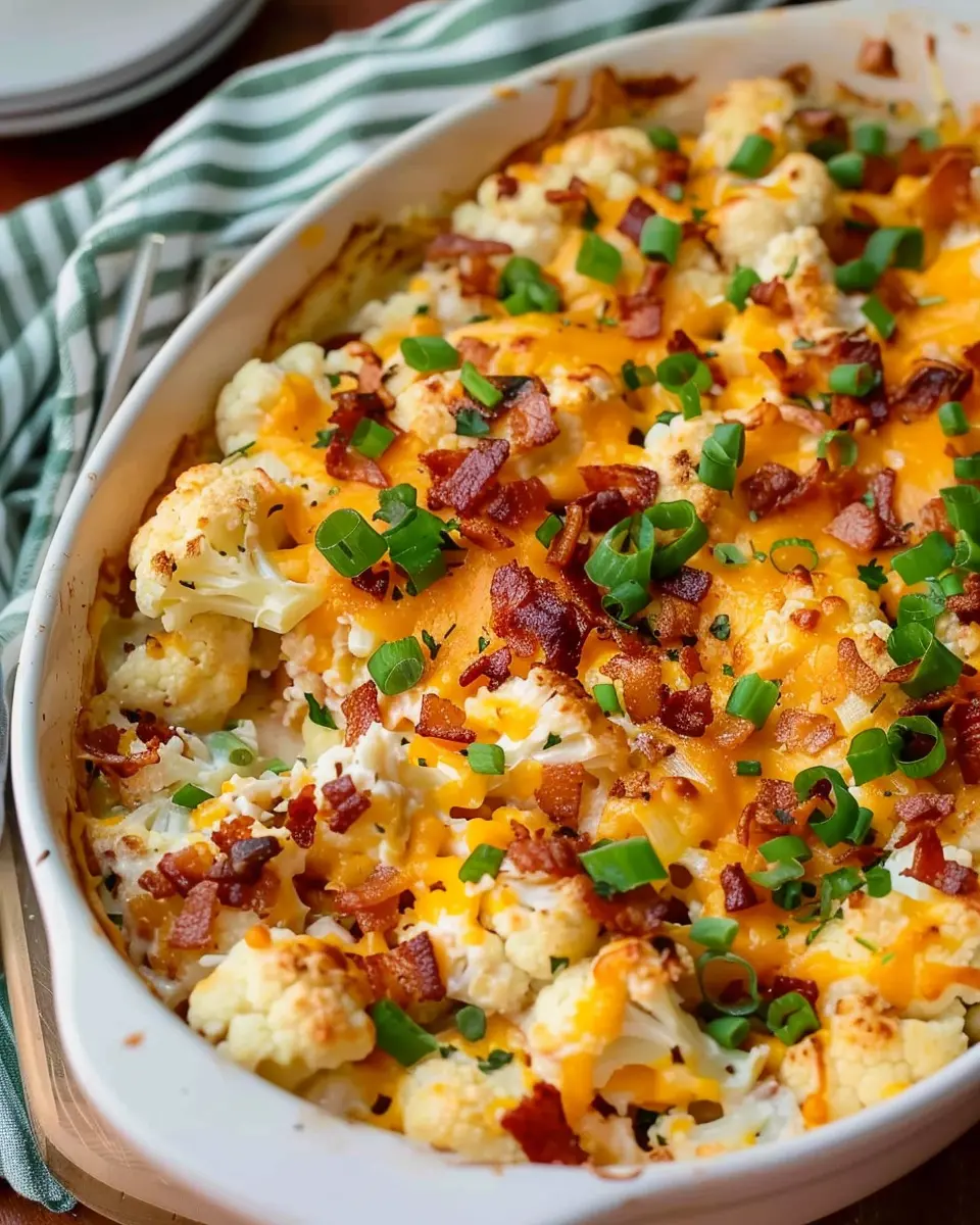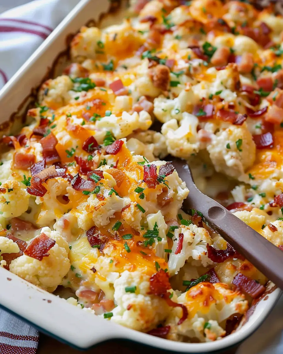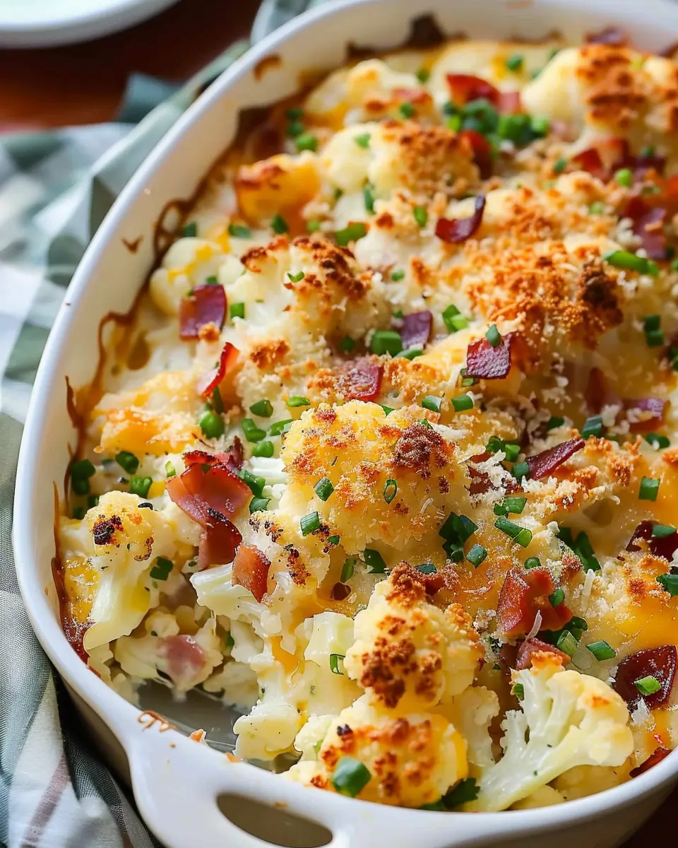 PrintLoaded Cauliflower Casserole: A Healthy Twist with Turkey Bacon