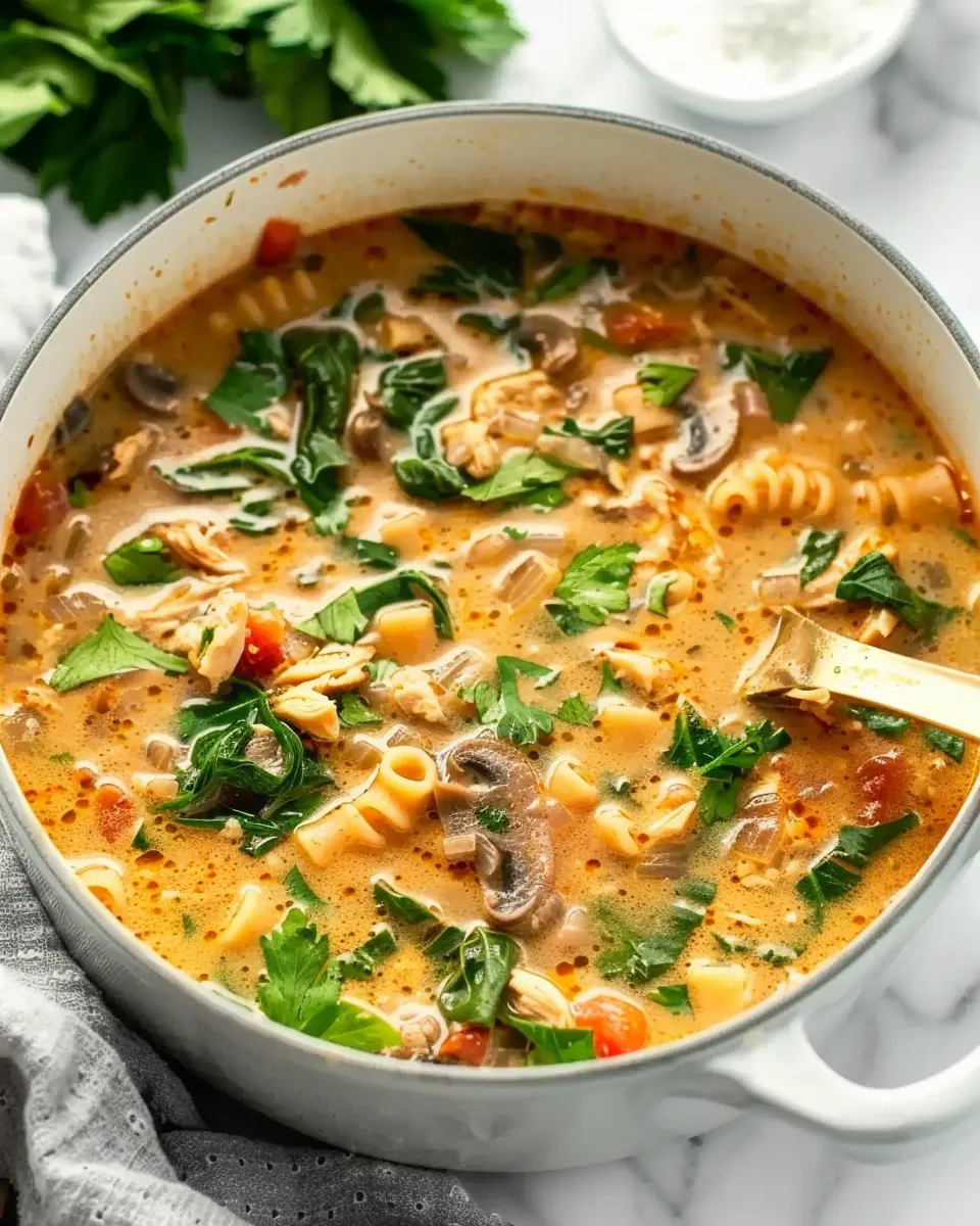 Imagine your favorite Italian flavors marrying into a cozy bowl of soup—this is what you get with a Creamy Tuscan-style chicken soup variation of the beloved Marry Me Chicken Soup. To make this heartwarming dish, start by incorporating sun-dried tomatoes, spinach, and heavy cream into your original recipe. These ingredients bring a rich, luxurious texture and vibrant color, making it not just delicious but visually appealing, too.