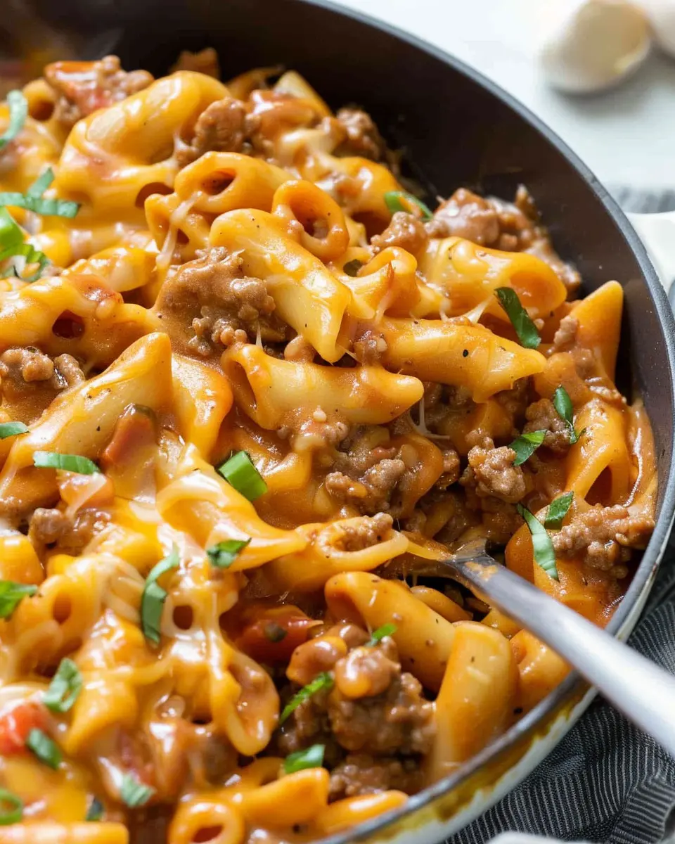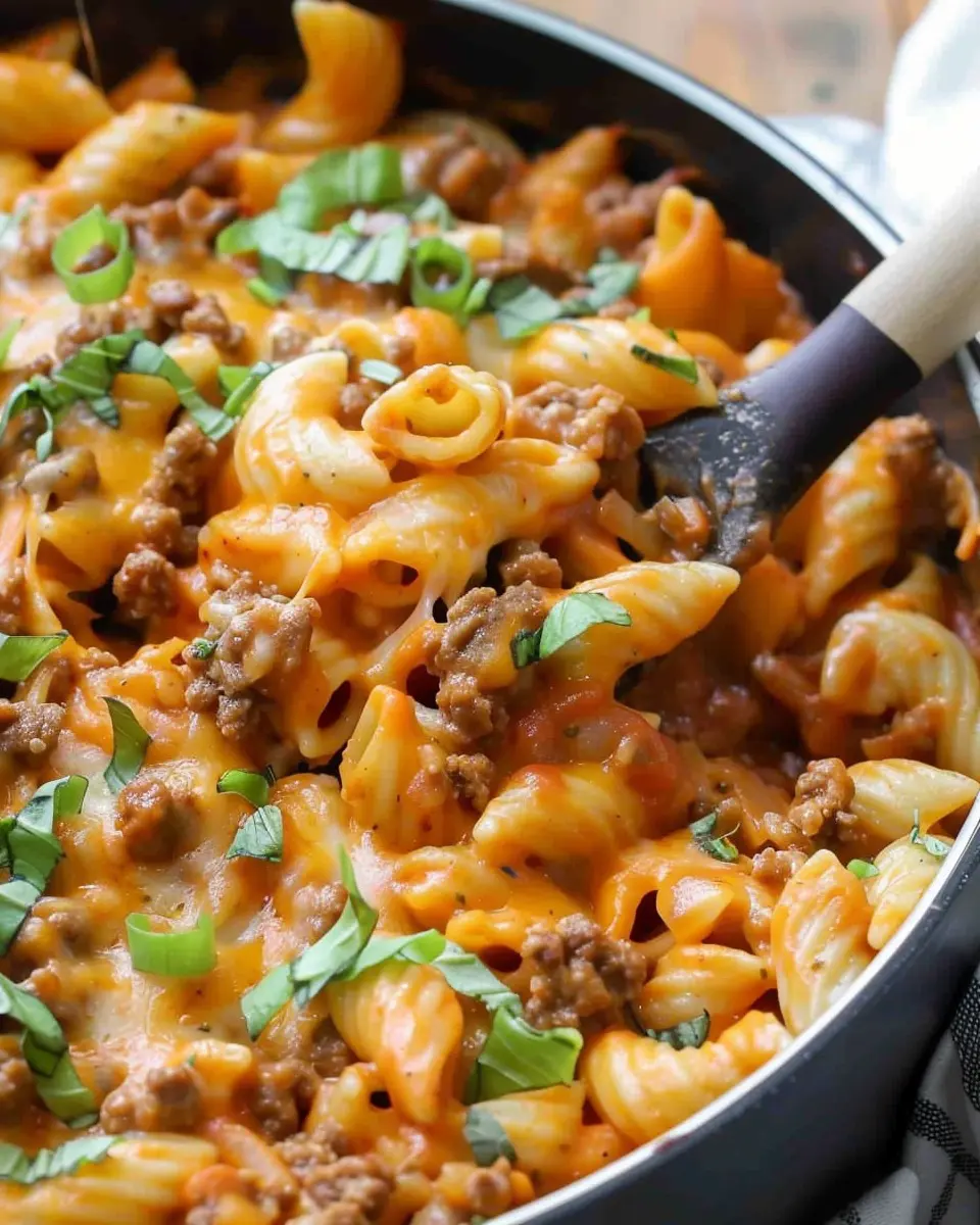 Once the pasta is perfectly cooked, itās time to add the star of the show: cheese! Reduce the heat to low and stir in 1 to 1.5 cups of shredded cheddar cheese. As the cheese melts, it will create a creamy, dreamy sauce that envelops the pasta and beef mixture beautifully. You’ll find yourself eagerly awaiting that first bite!