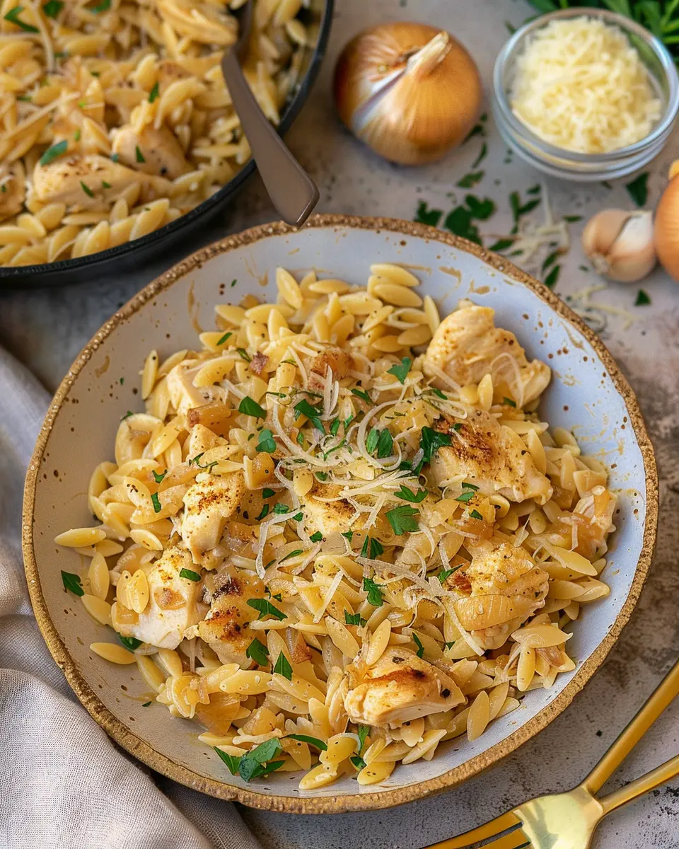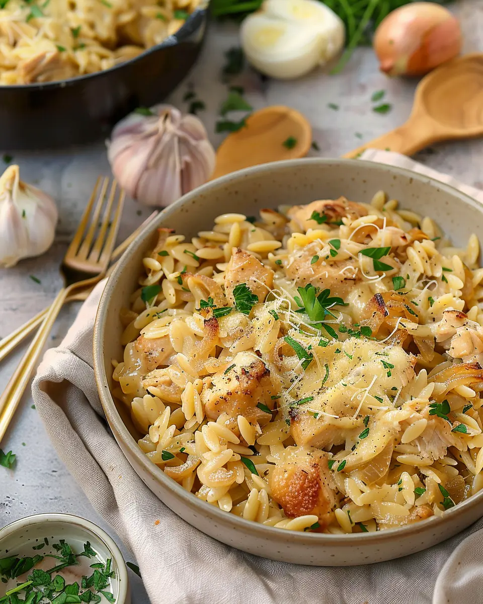 This One Pot French Onion Orzo with Chicken is a delightful and comforting dish perfect for any occasion.