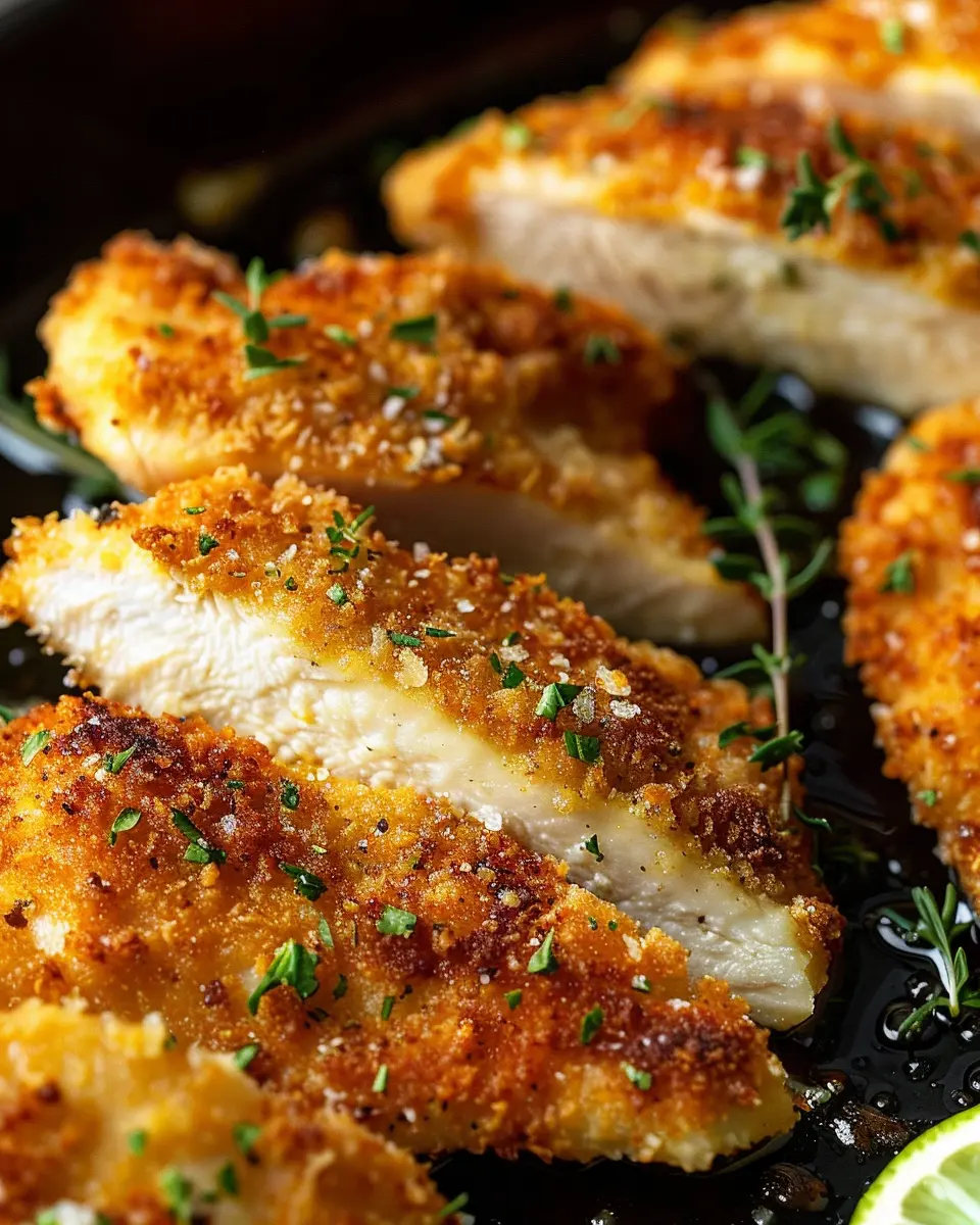 Enhance your Parmesan Crusted Chicken with a fragrant herbal twist. Incorporating fresh herbs such as basil, thyme, or parsley into your breadcrumb mixture not only adds flavor but also a lovely aromatic quality. A sprinkle of dried Italian herbs or a zest of lemon can also brighten up the dish. Imagine serving it alongside a light arugula salad for a perfect dinner vibe—a delightful culinary experience!