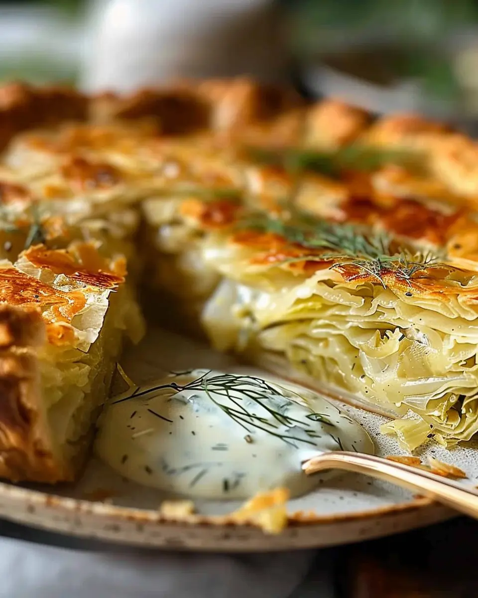 Stay tuned as we dive into the recipe and show you how to create this perfect crispy cabbage pie with a delectable dill cream sauce that adds the finishing touch.