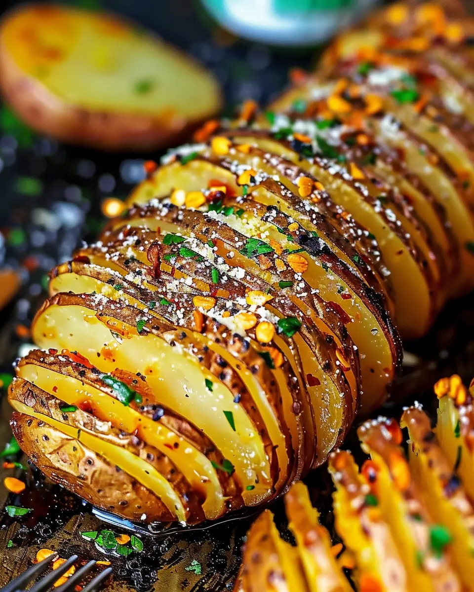 Imagine the creamy, gooey goodness of cheese melting into every slice of your Hasselback potato. To create this variation, start by mixing your favorite shredded cheese—like cheddar or mozzarella—with fresh herbs such as rosemary and thyme.