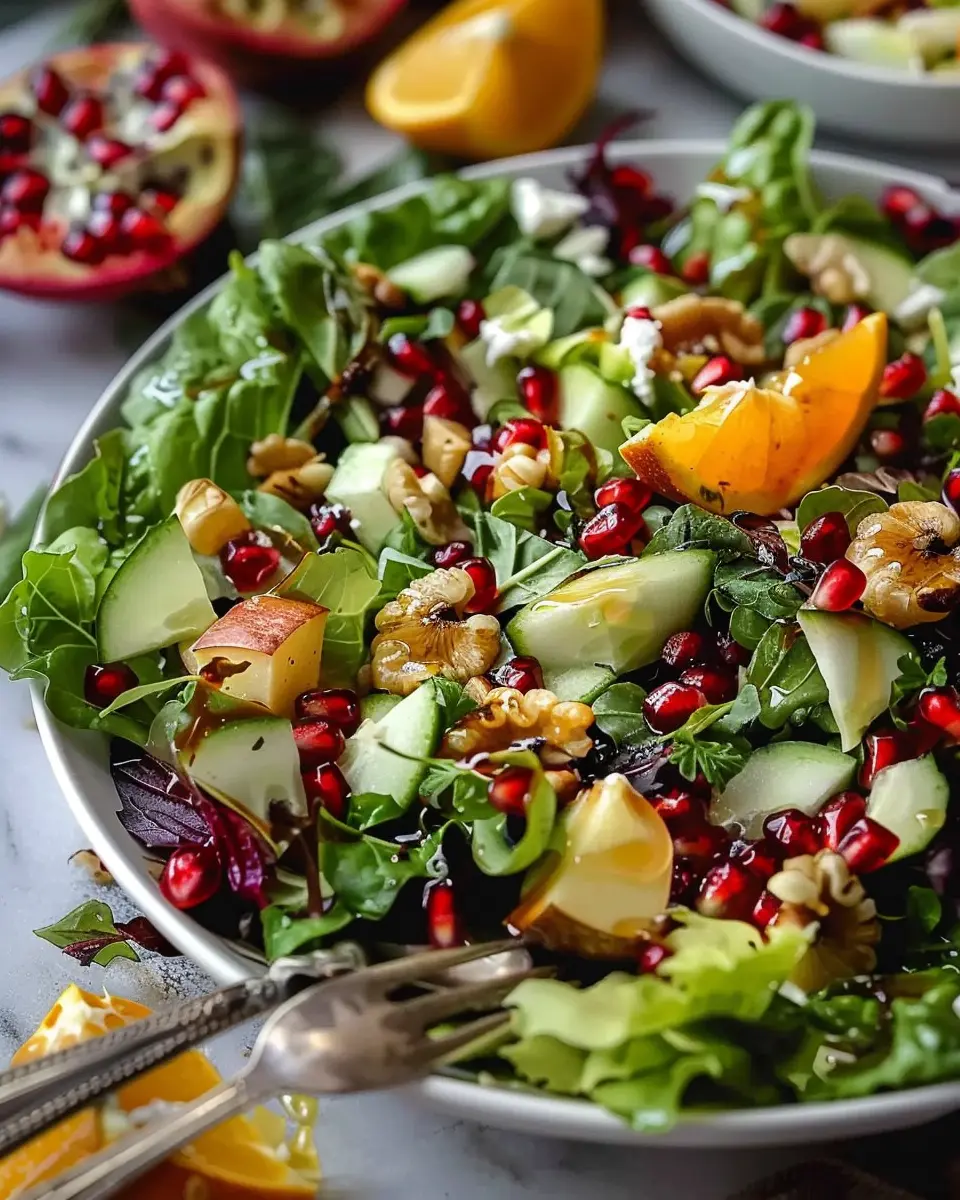 Why not take your Pomegranate Christmas Salad to the next level by adding some seasonal citrus fruits? Think about brightening up your dish with the refreshing tang of orange or grapefruit segments. Not only do they add a beautiful pop of color, but they also contribute a zesty flavor that complements the sweetness of the pomegranate. To enhance this seasonal twist, consider using lemon or lime juice in your dressing for a delightful citrusy zing.
