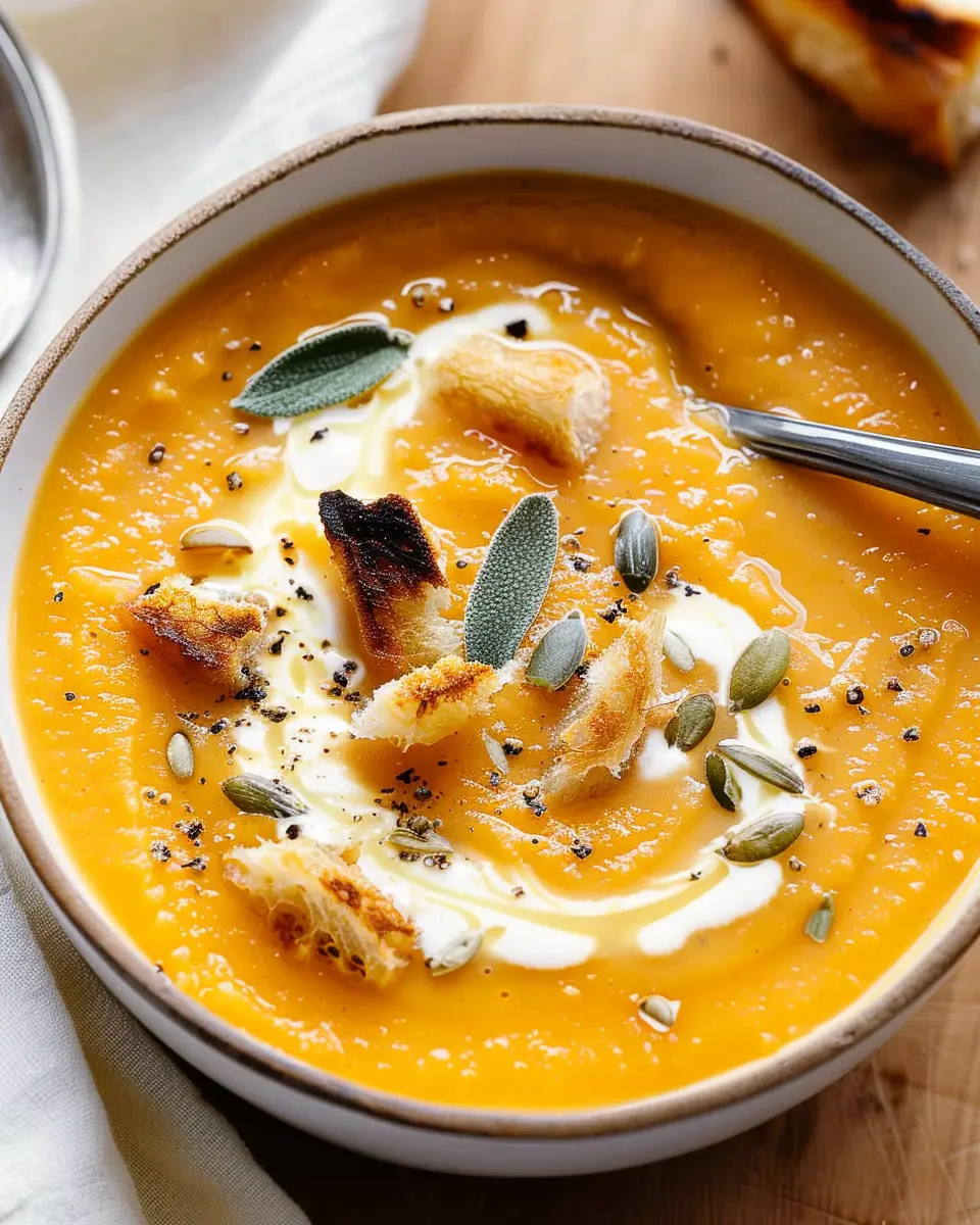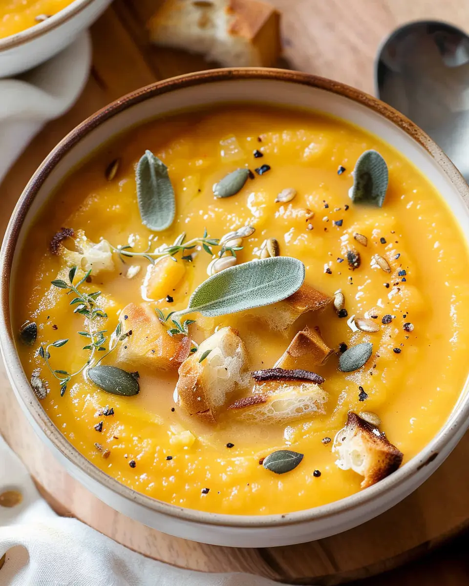 Warm up with a comforting bowl of roasted butternut squash soup, perfect for chilly days.