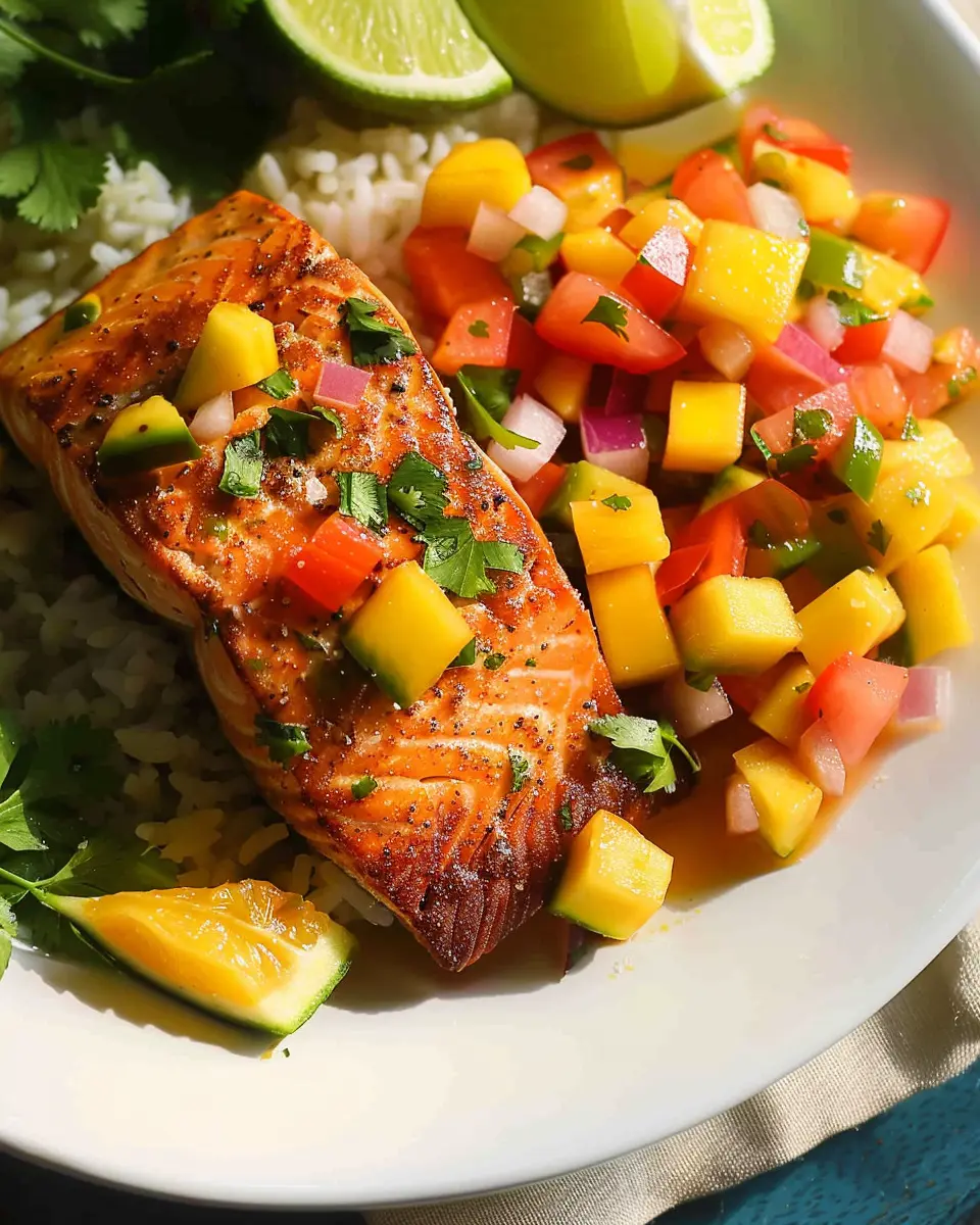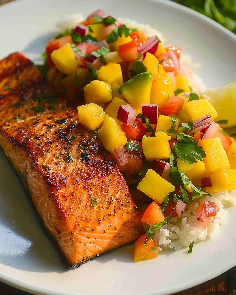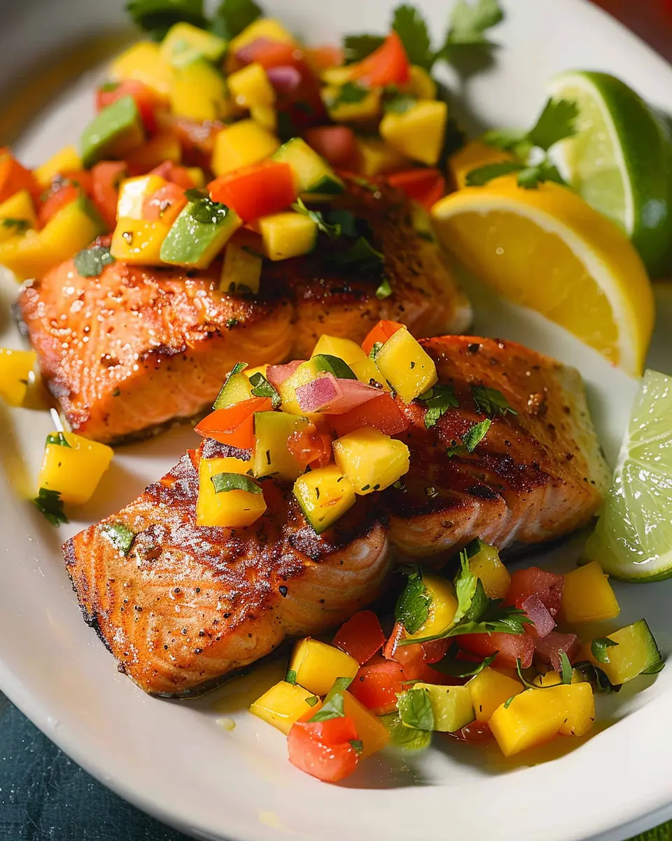 Enjoy a vibrant and refreshing dish that combines the rich flavors of salmon with zesty mango salsa.