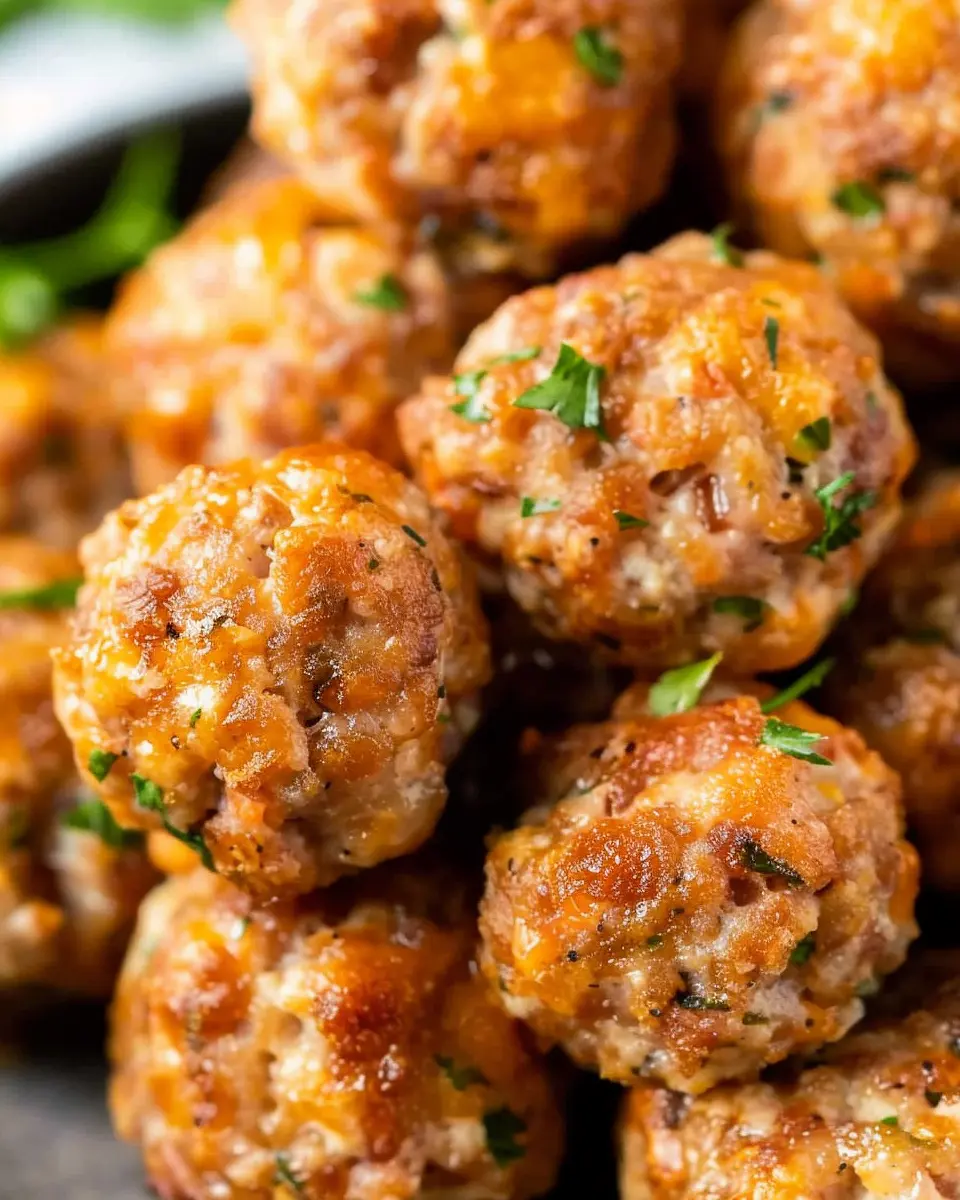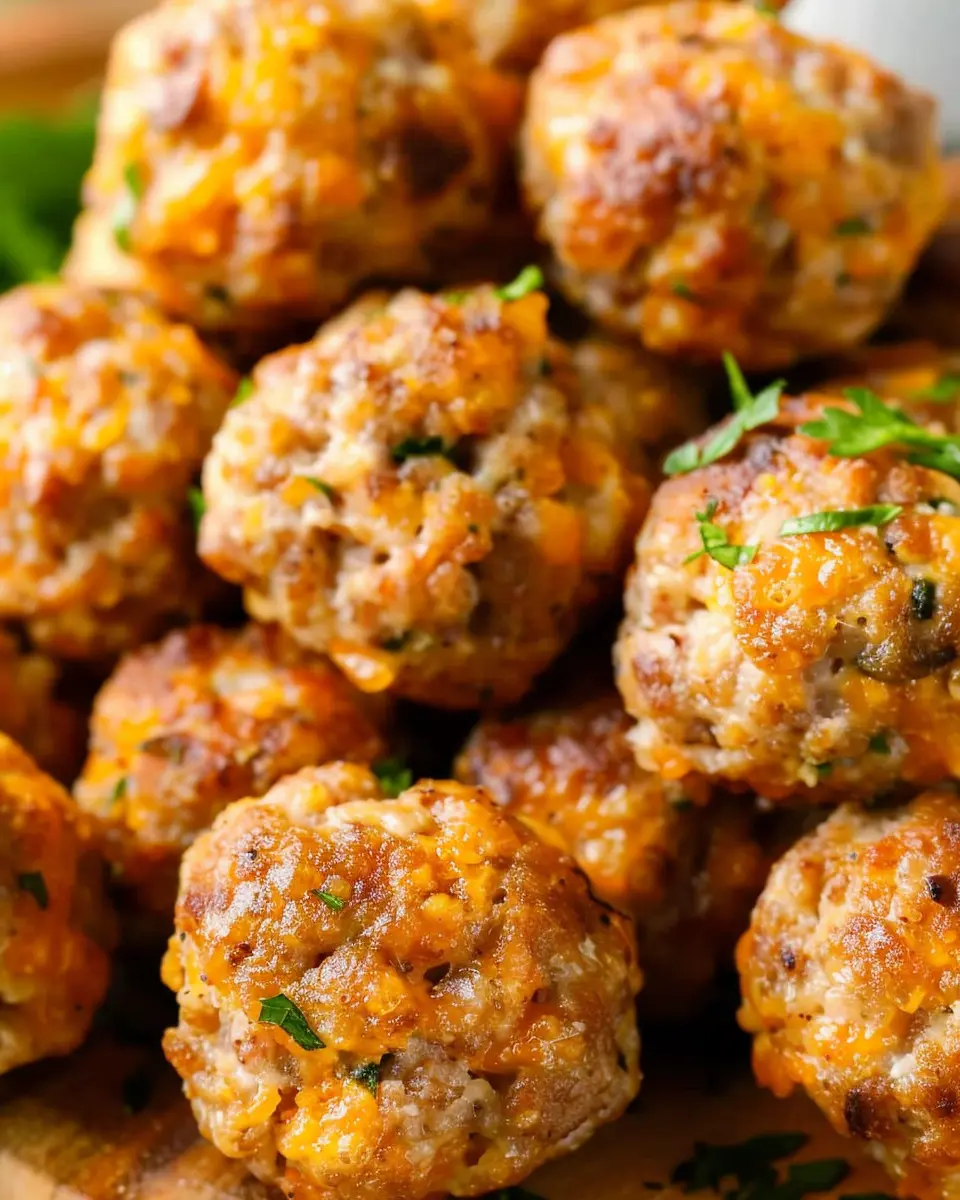- Presentation: Use a beautiful wooden board or a vibrant platter, and surround the sausage balls with garnishes like parsley and cherry tomatoes for a pop of color.