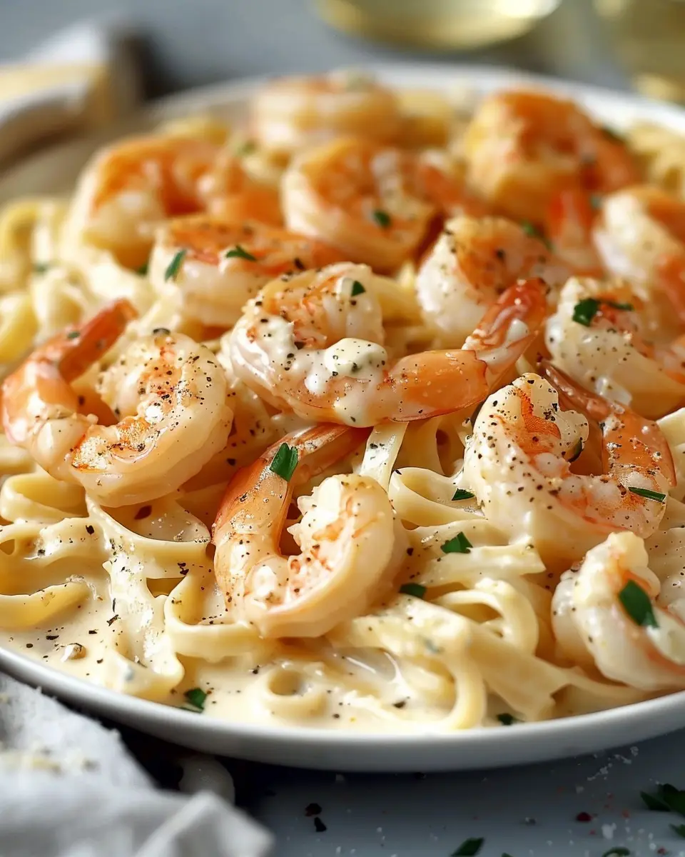 Delicious and creamy Shrimp Alfredo that you can easily make at home. Perfect for a cozy dinner!