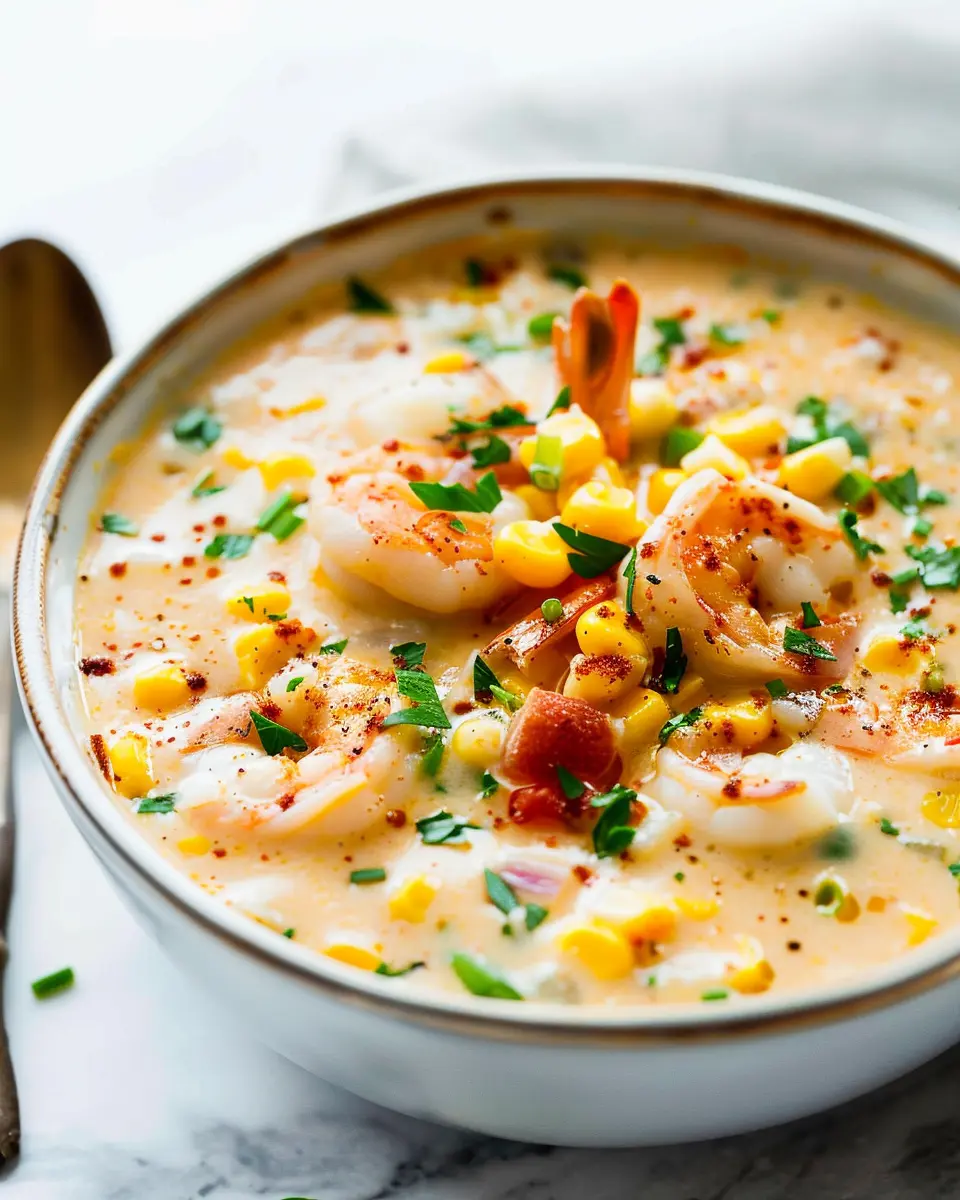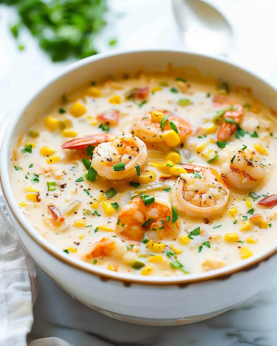 PrintShrimp Corn Chowder: A Cozy, Creamy Delight with Turkey Bacon