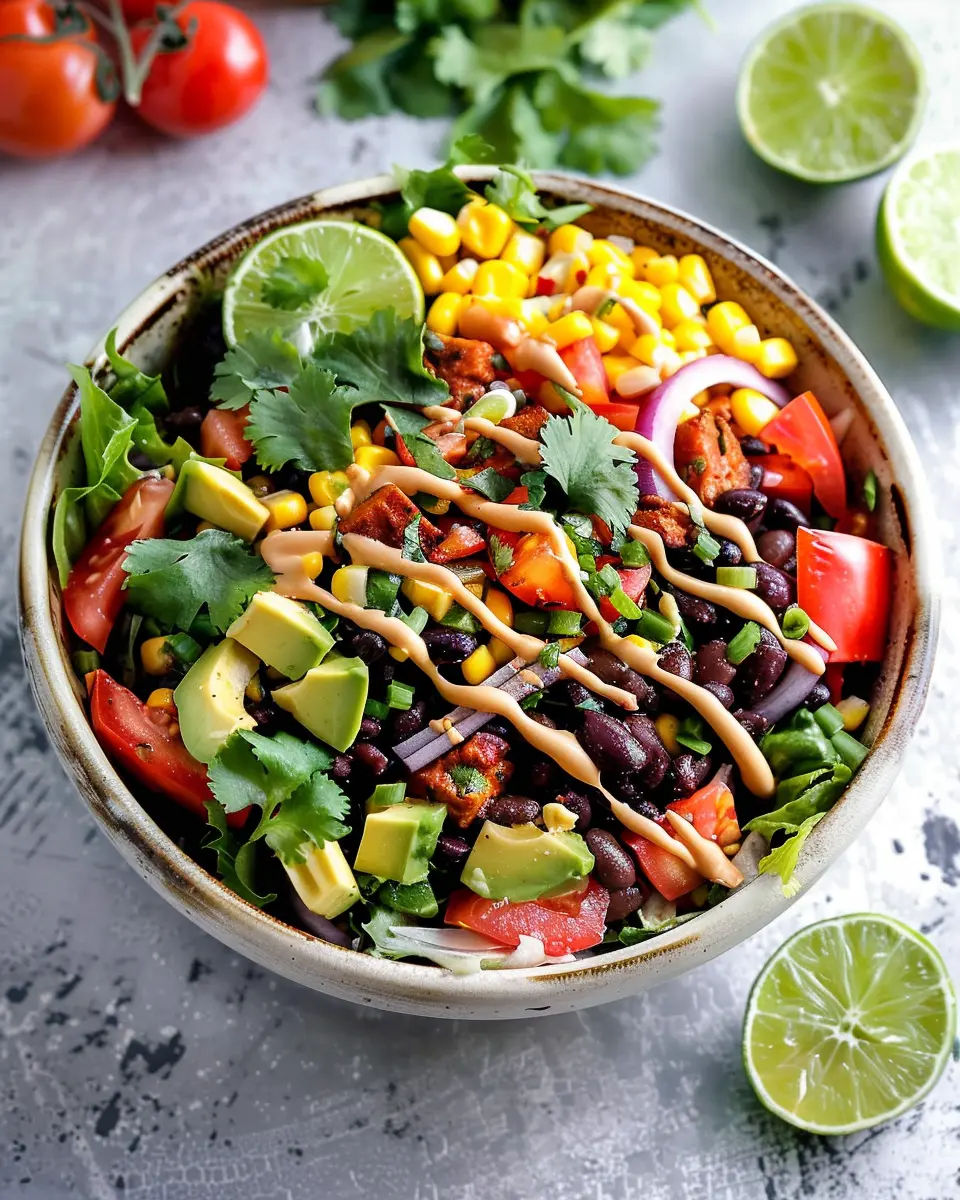 Preparing your spicy southwest salad is a breeze! You’ll spend about 15 minutes chopping veggies, mixing dressings, and prepping all those delicious toppings. Simple steps make this salad as fun to make as it is to eat.
