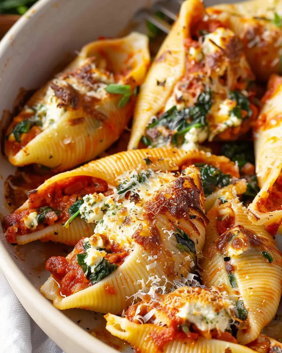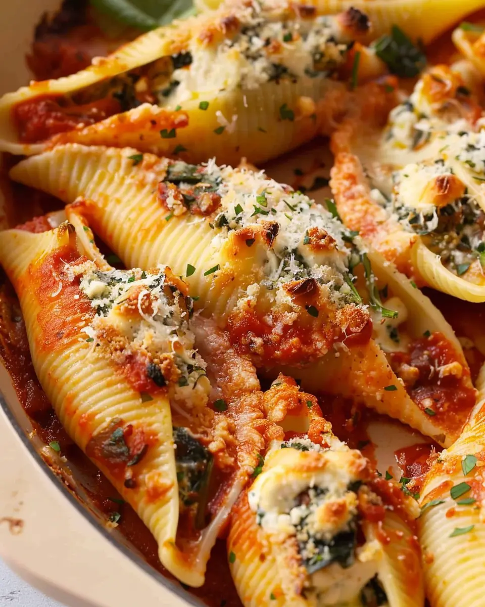 A delicious recipe for stuffed pasta shells filled with spinach and ricotta, perfect for a comforting meal.