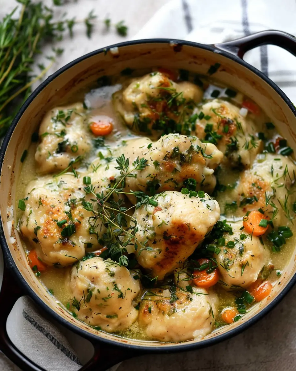 Be careful not to overmix—this will ensure your dumplings stay tender and light. If you’d like to add a few fresh herbs like parsley and dill to the dough, you can create a delightful herbaceous kick that complements the chicken beautifully.