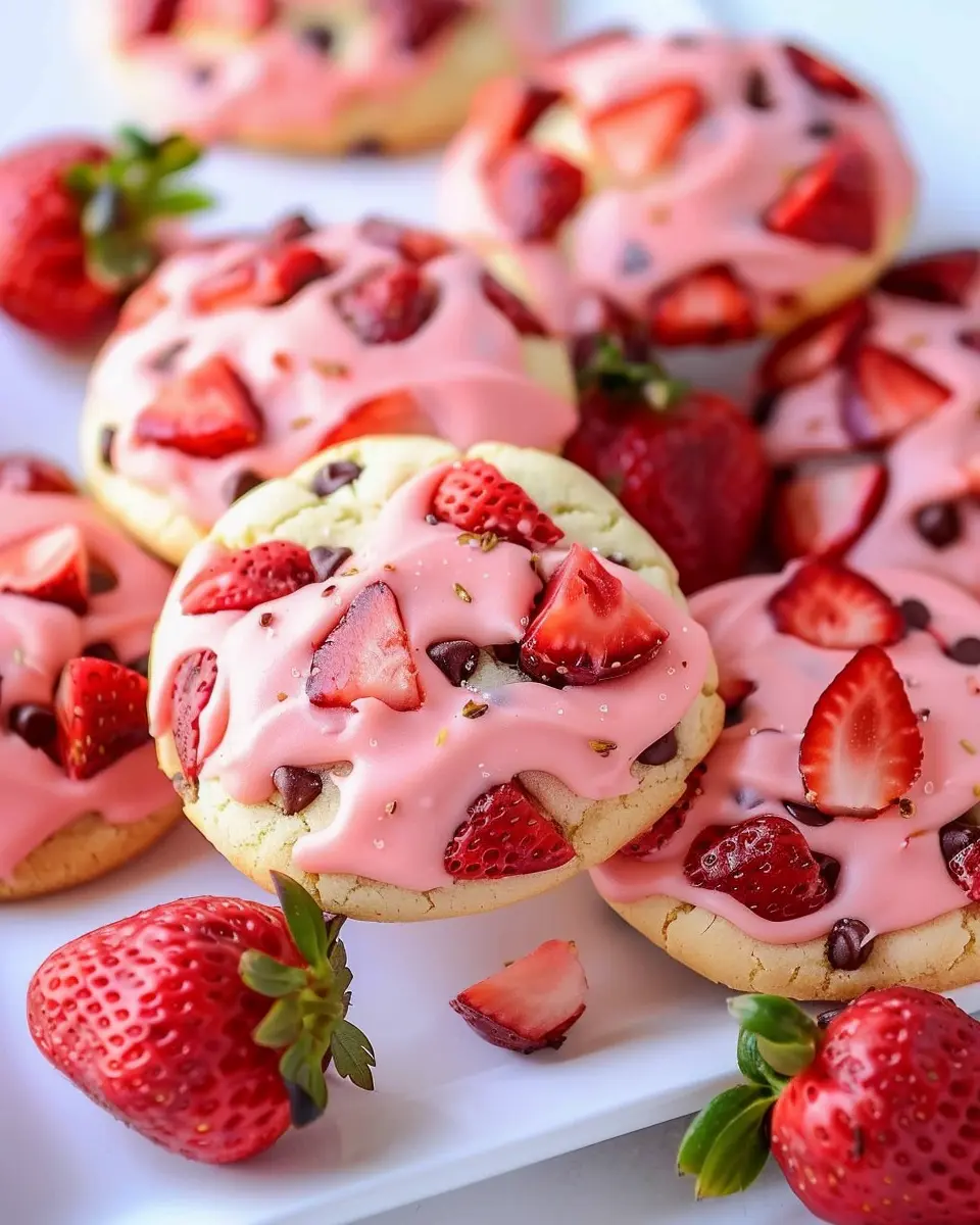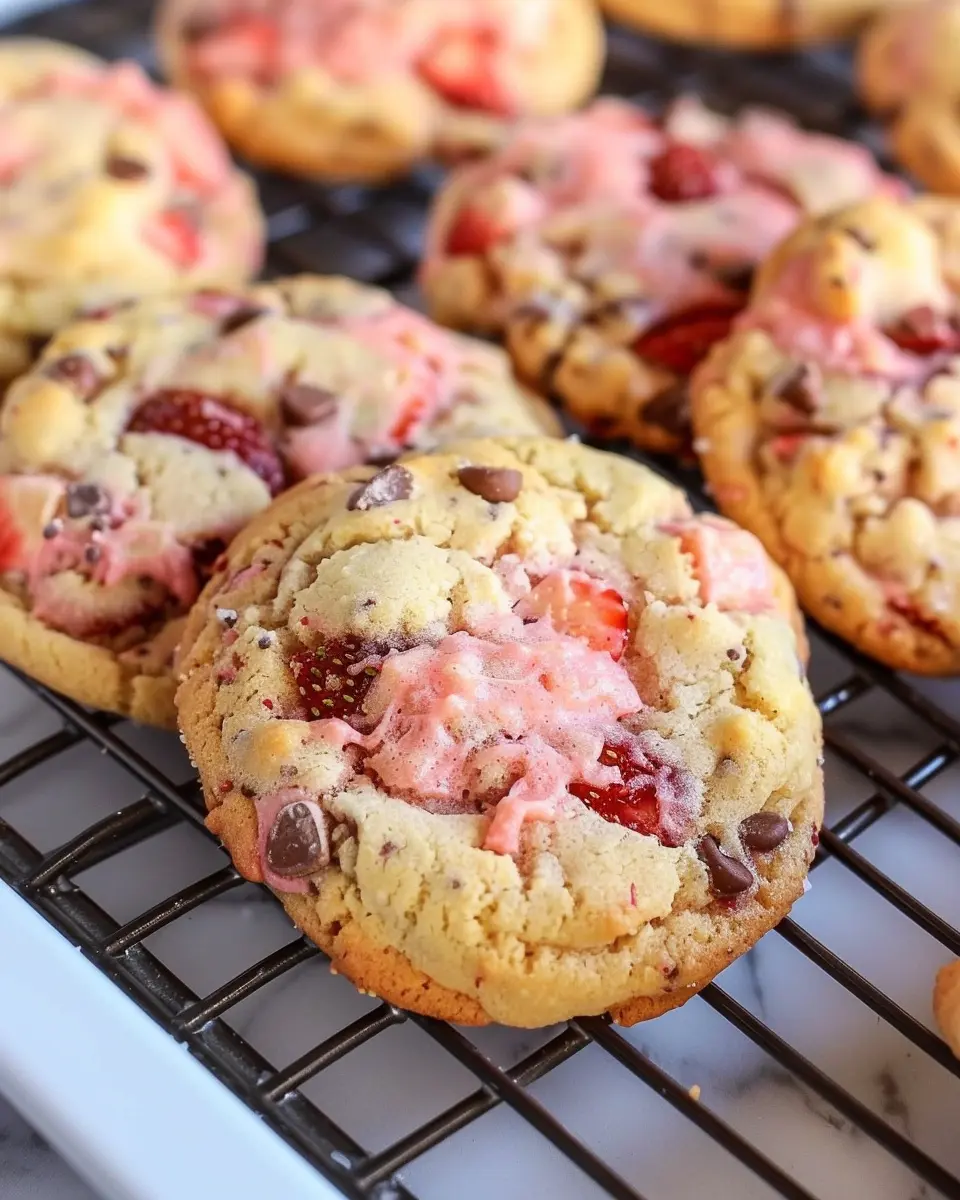 Presentation is key to making your strawberry cookies shine! Arrange them on a rustic wooden platter, perhaps garnished with a few fresh strawberries for a pop of color. Alternatively, stack them in a clear jar tied with twine for a charming gift option. You could even place them in a decorative box for special occasions. A sprinkle of powdered sugar on top adds an elegant touch, making them irresistible—perfect for impressing guests at your next gathering!