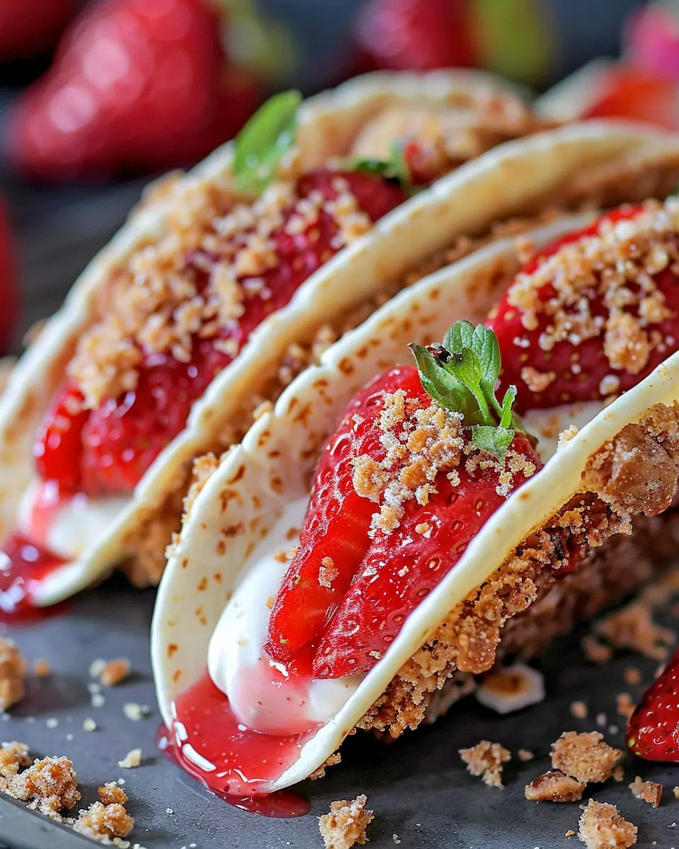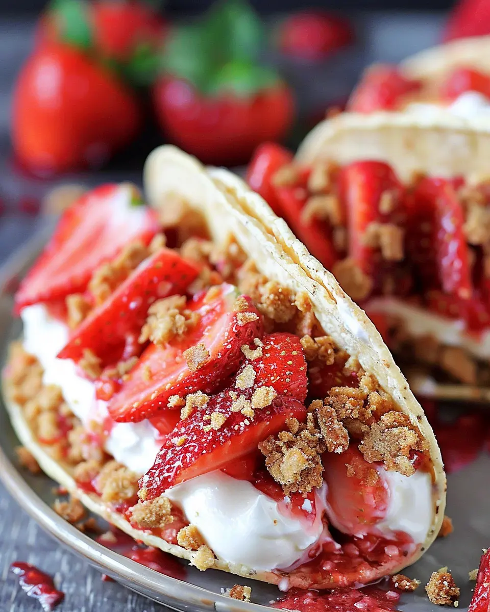 Indulge in these delicious Strawberry Crunch Cheesecake Tacos, a perfect blend of creamy cheesecake and strawberry goodness.