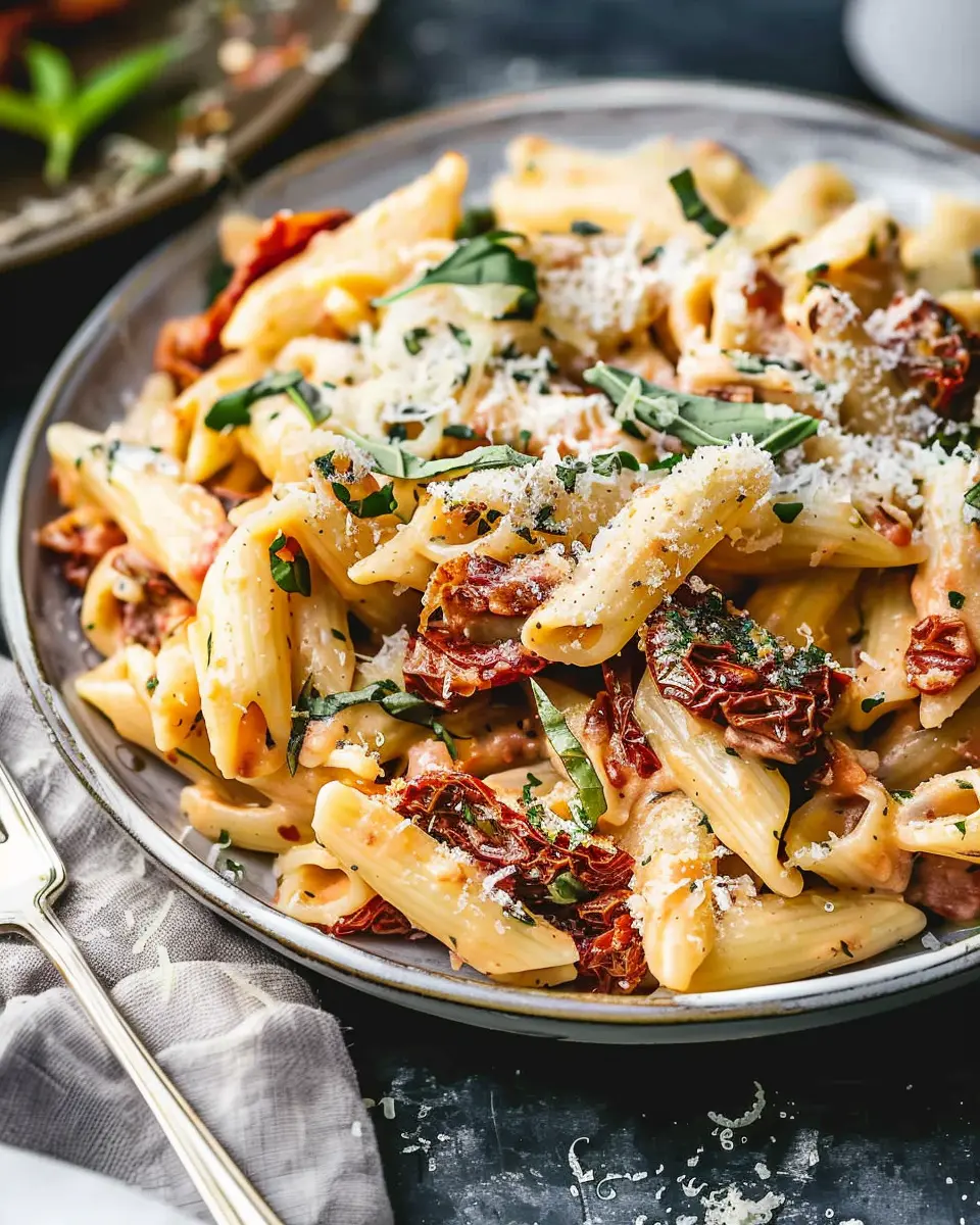 PrintSun-dried Tomato Pasta with Turkey Bacon for an Indulgent Feast