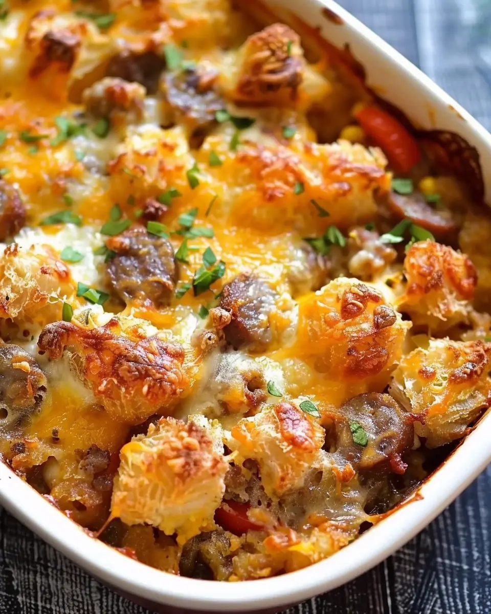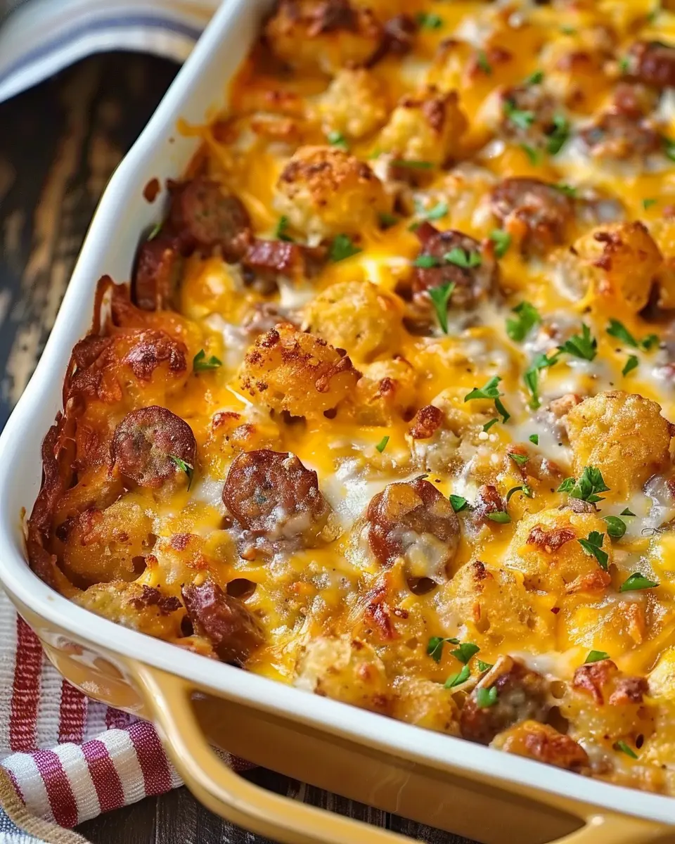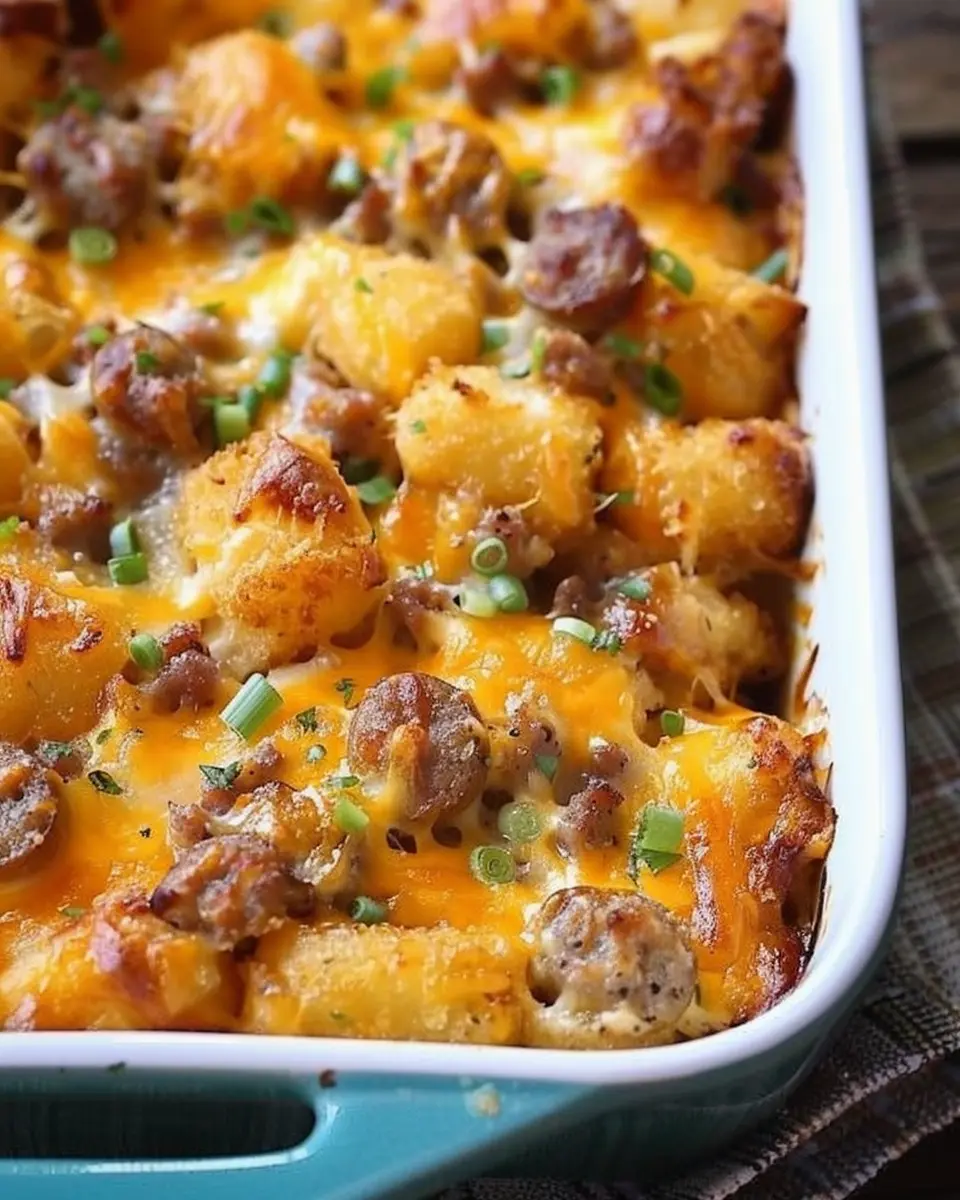 PrintTater Tot Sausage Breakfast Casserole: Easy & Indulgent Twist